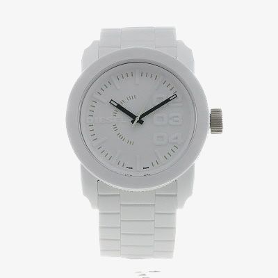 Diesel bring us this fashionable modern look strap watch perfect for accessorising any outfit in a bright finish. The round white dial features modern detailing held tightly to your wrist with a white rubber strap and traditional buckle closure.