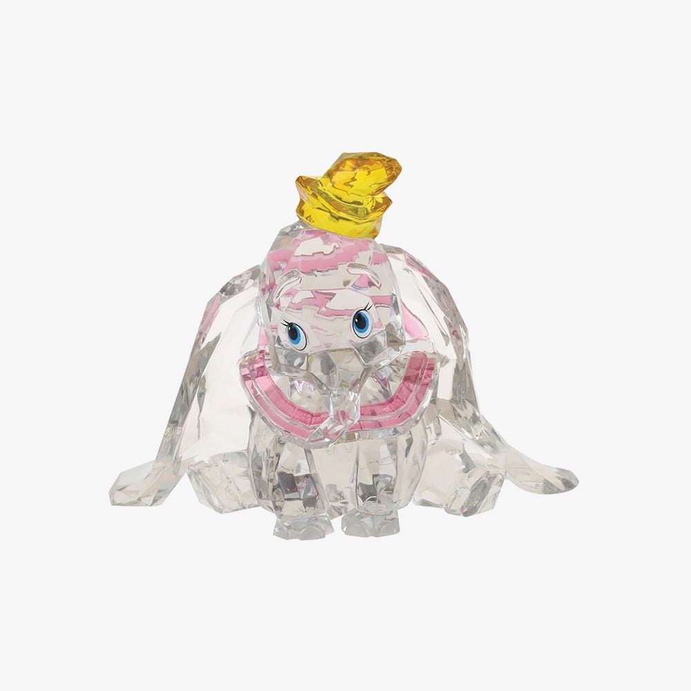 Celebrate Disney magic with the Dumbo Figurine from the Licensed Facets Collection. Crafted from gem-cut clear, pink, and yellow acrylic, this sparkling piece depicts Dumbo sitting sweetly, catching the light to create a dazzling, whimsical display. A perfect collectible or gift for Disney fans.