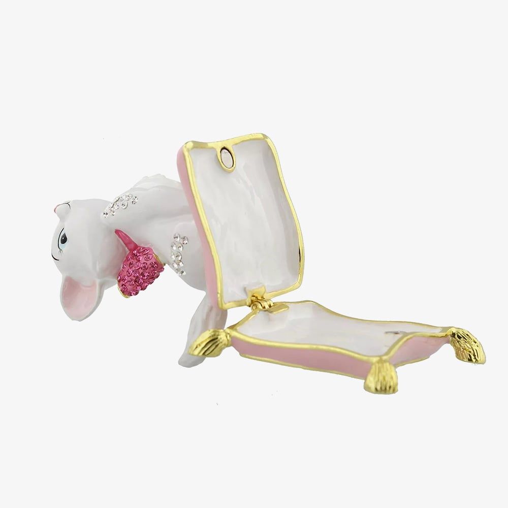 Inspired by the beloved Disney classic The Aristocats, this exquisite trinket box features Marie in a hand-painted finish, beautifully adorned with white and pink crystals. A magnetic clasp ensures it stays securely closed, keeping precious keepsakes safe inside. Presented in a silk-lined, cushioned Disney-branded box, this elegant piece is a stunning collectible and perfect gift for Disney fans and lovers of timeless charm.