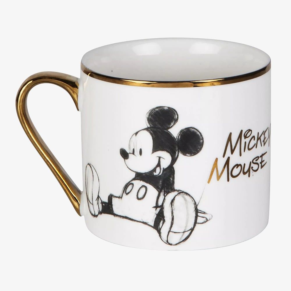 Enjoy a touch of timeless charm with this Mickey Mouse mug, featuring a classic pencil illustration, gilt handle and lip, and a hidden ‘Mickey’ detail on the inside base. Presented in a black and gold foiled gift box, it makes an elegant and collectible gift for fans of Disney’s iconic character. Not suitable for microwave or dishwasher.