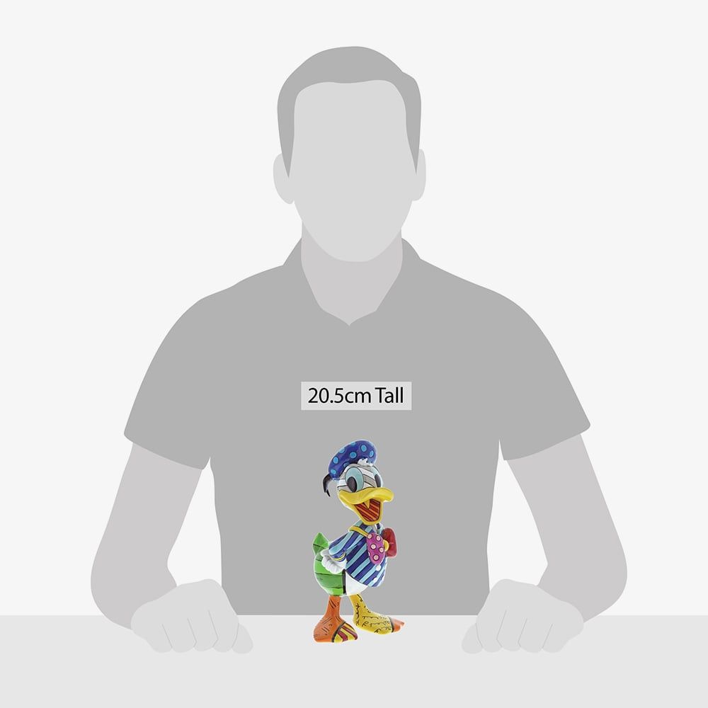 Add bold style to your collection with the Donald Duck Figurine from Disney by Britto. Designed by pop art artist Romero Britto and crafted from cast stone, this vibrant piece features Donald wearing a suit jacket and hat in a multicolour, multi-pattern pop art design, making it a striking collectible or gift for Disney and art enthusiasts.