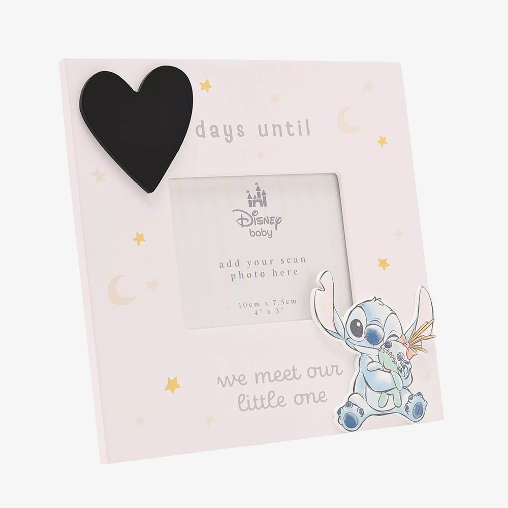 Welcome the excitement of a new arrival with the Stitch Baby Countdown Scan Frame, a charming Disney keepsake. It features a dedicated space for a precious scan photo and a black chalkboard heart to track the countdown to the baby’s arrival. Crafted from MDF with a matte finish, this frame is a delightful and memorable way to celebrate the upcoming arrival.