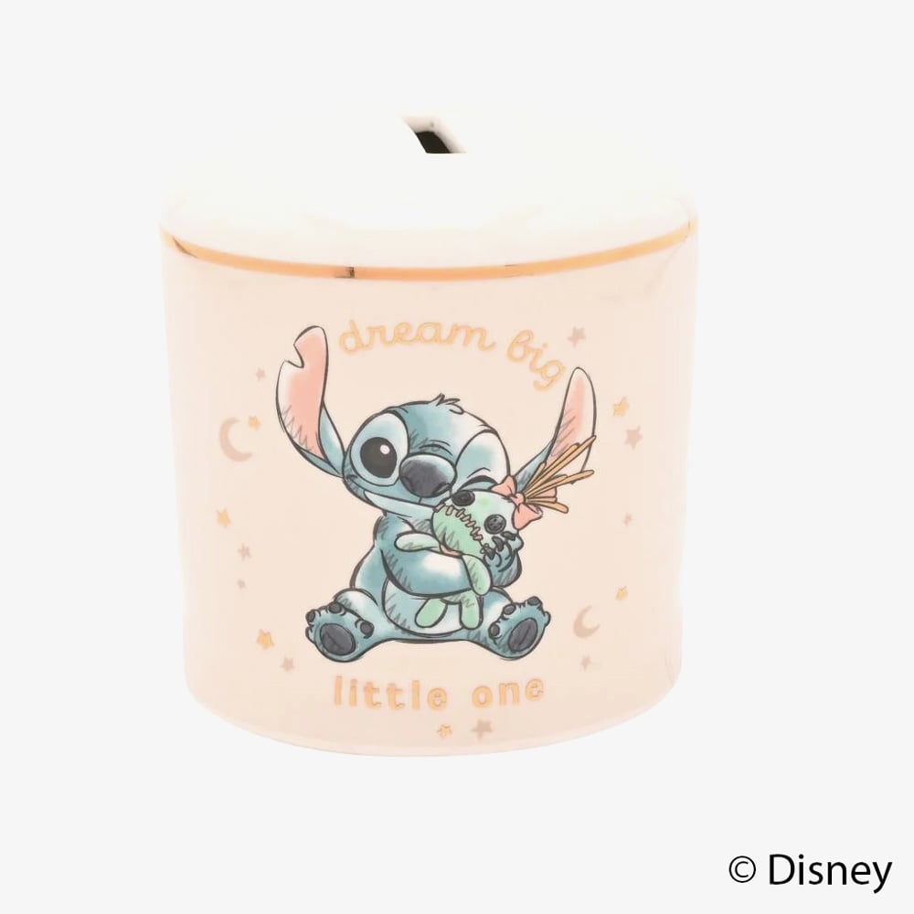 Bring the magic of Disney into your home with our charming Stitch Baby Money Bank, a playful ceramic treasure featuring the lovable character from Lilo & Stitch. This delightful money bank showcases Stitch sitting with a whimsical expression that appeals to both children and adults alike, making saving coins a fun and engaging endeavour. It's the perfect addition to any Disney fan's collection.