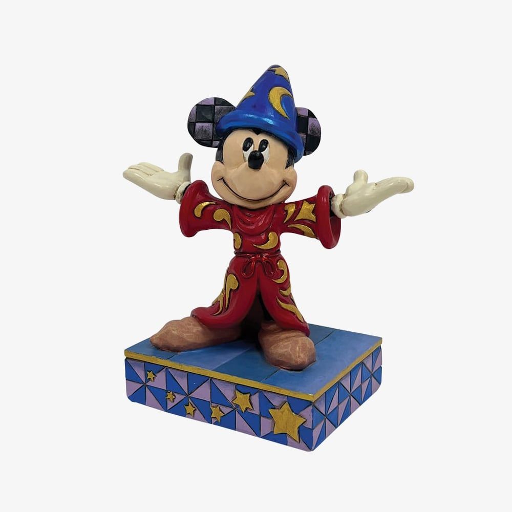 Celebrate Disney magic with the Magical Moment Sorcerer Mickey Figurine from the Disney Traditions Collection. Designed by award-winning artist Jim Shore and crafted from cast stone, this hand-painted figurine depicts Mickey Mouse in his iconic sorcerer’s cloak and hat from Fantasia, commemorating the film’s 85th anniversary. A must-have collectible for Disney fans.