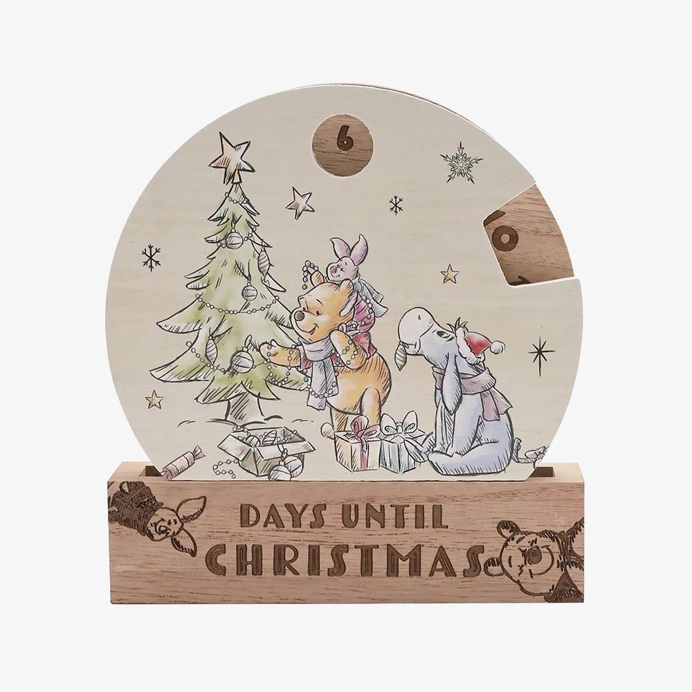 Count down to Christmas with Winnie the Pooh, Piglet, and Eeyore as they decorate their festive tree! This charming wooden advent calendar features a rotating date wheel and sturdy stand, bringing a touch of Disney magic and nostalgia to your holiday décor.