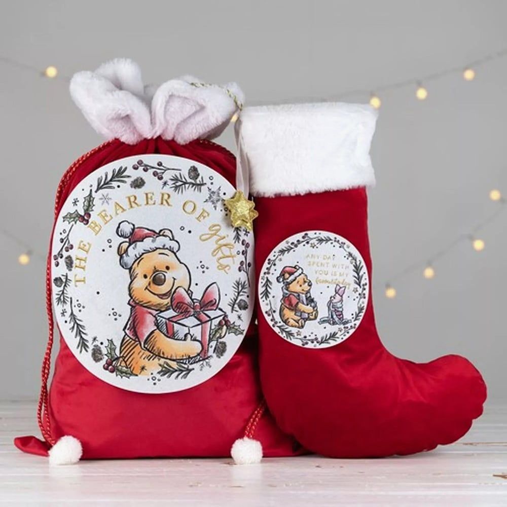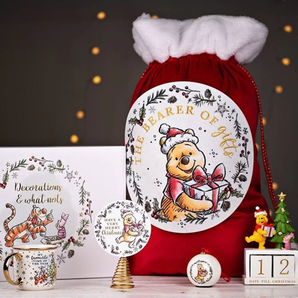 Brighten a little one’s Christmas morning with this charming Winnie the Pooh gift sack. Adorned with a delightful illustration of Pooh and the phrase “The bearer of gifts” in sparkling gold letters, it’s both adorable and unique, perfect for holding festive treats and presents.