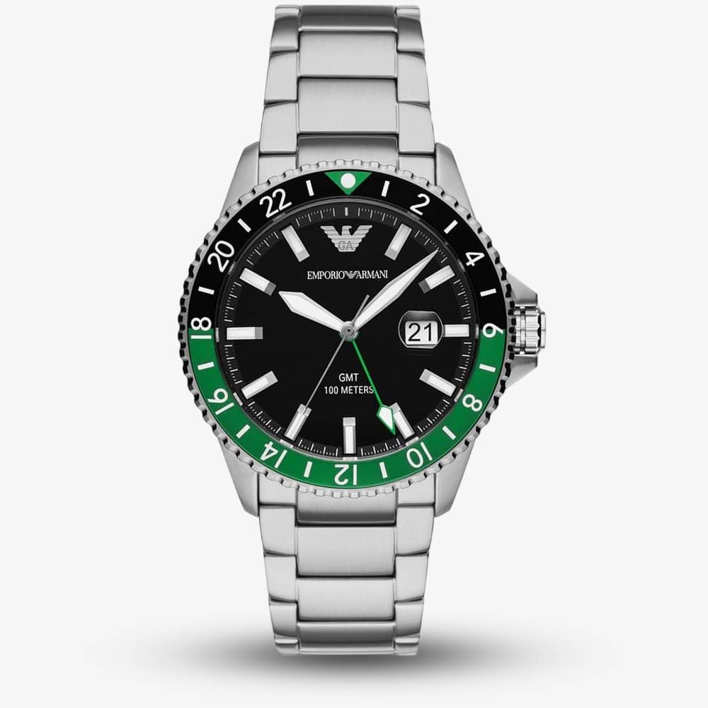 Emporio Armani Diver Black & Green GMT Watch AR11589