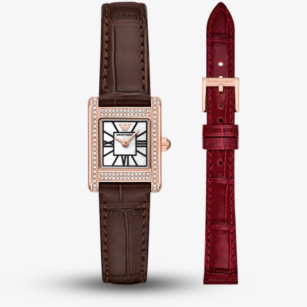 Emporio Armani Ladies Genni Brown & Red Interchangeable Leather Strap Watch AR80083SET