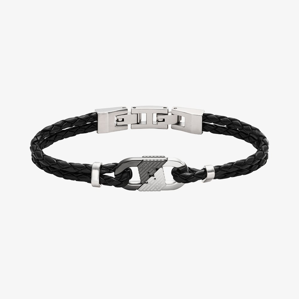 Emporio Armani Mens Black Leather ID Bracelet EGS3171040 Emporio Armani Mens Black Leather ID Bracelet EGS3171040