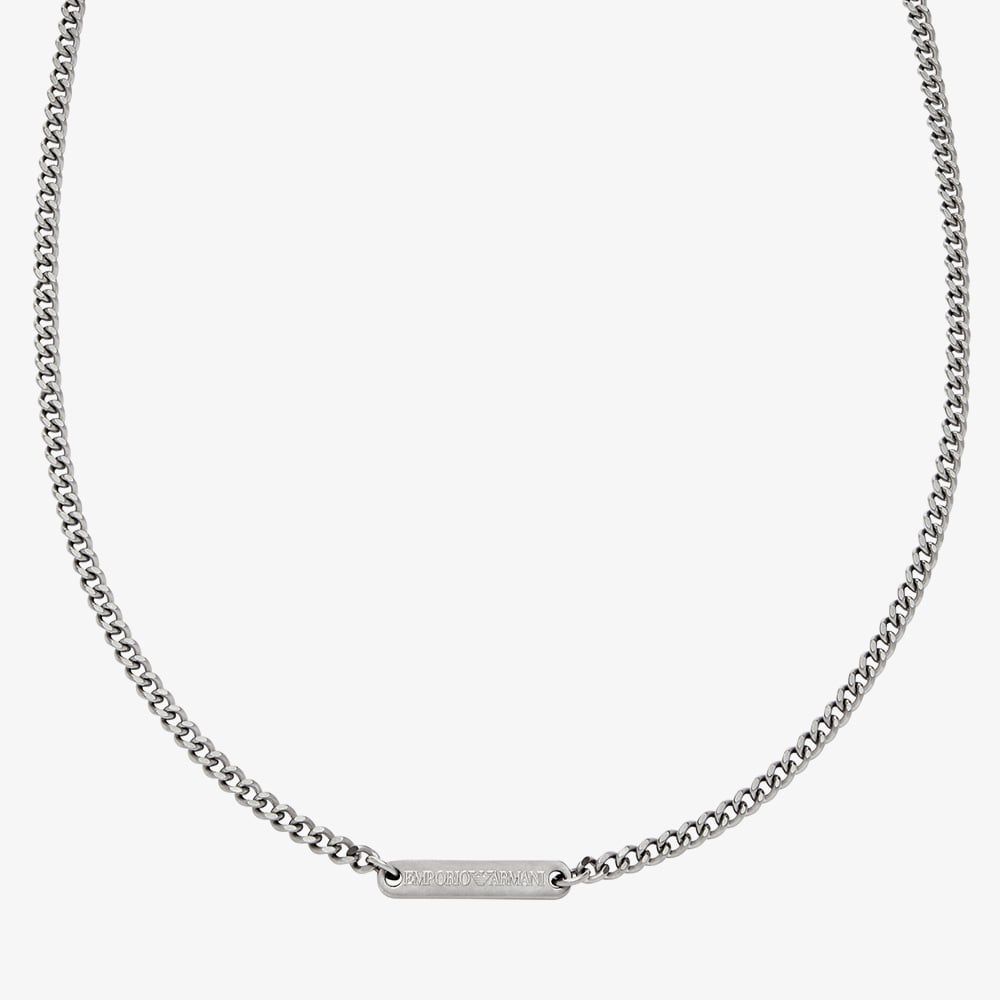 Sleek and contemporary, this stainless steel ID necklace by Emporio Armani channels effortless confidence. Featuring a minimalist rectangular plaque on a robust, brushed finish curb chain, it’s finished with a secure lobster clasp for easy wear. Subtle logo detailing adds a signature touch, making it a versatile piece, ideal worn solo for a clean, refined look or layered for a modern edge.