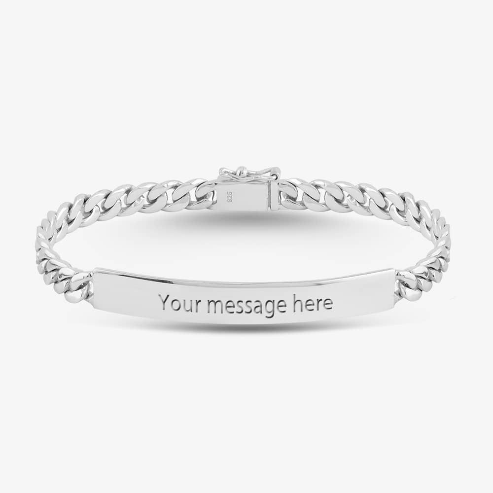 This smart curb ID bracelet is a perfect gift for a loved one. Add a name, a personal message of love and affection, or even 'In Case of Emergency' instructions to either side of the sterling silver plaque, which will remain secure on your intendeds wrist with the secure safety clasp closing system.