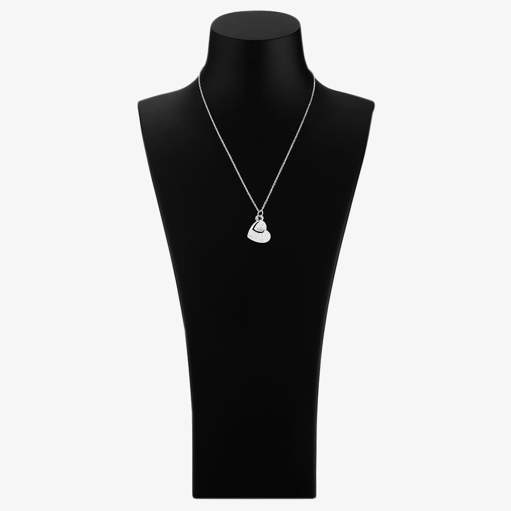 Express your love with this shimmering engravable pendant. The larger heart has a cut-out which frames the smaller charm, itself embossed with a tiny heart at the bottom. Add a free personal message to make this a truly unique gift.