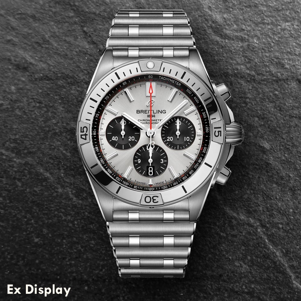 An all purpose watch for your every pursuit - The Breitling Chronomat. Introduced in 1984, thin quartz timepieces were the order of the day - In comparison the Breitling Chronomat was an impressively proportioned mechanical watch. Constructed in stainless steel, the watch features a mechanical chronograph function. The striking silver dial is set with stainless steel luminescent hour markers and hands for easy legibility in low light conditions. The piece is finished with a signature 'Rouleaux' bracelet and is powered by the in-house Breitling Manufacture Caliber 1, a COSC certified chronometer.