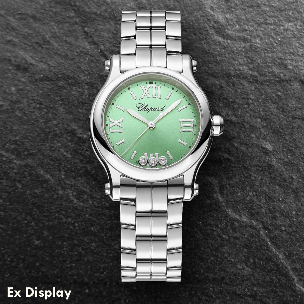 These new editions of the Chopard happy sport feature a new coloured dial that really makes the watch stand out. This watch features a stunning green dial and a stainless-steel bracelet. The watch also features the trademark floating diamonds on the dial.