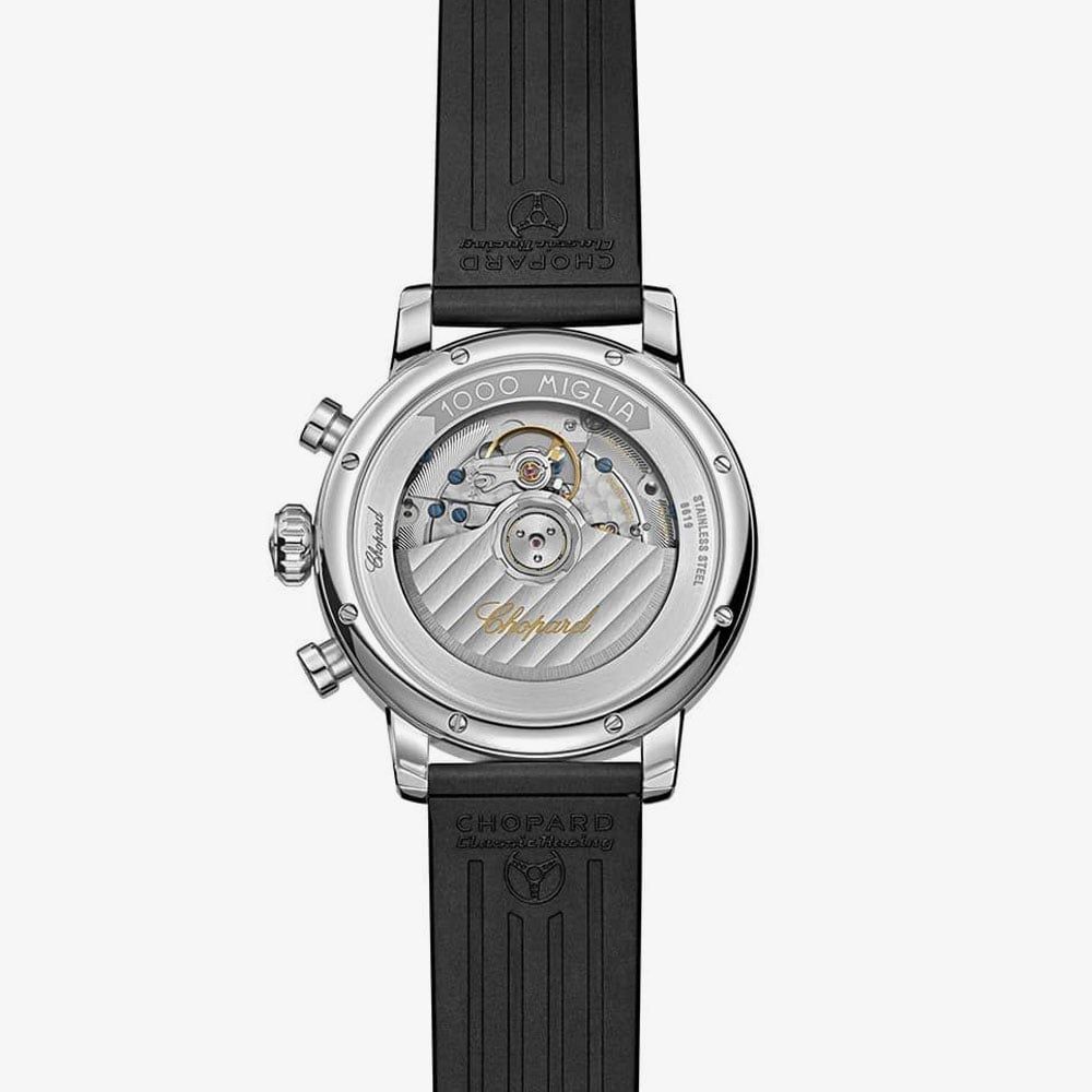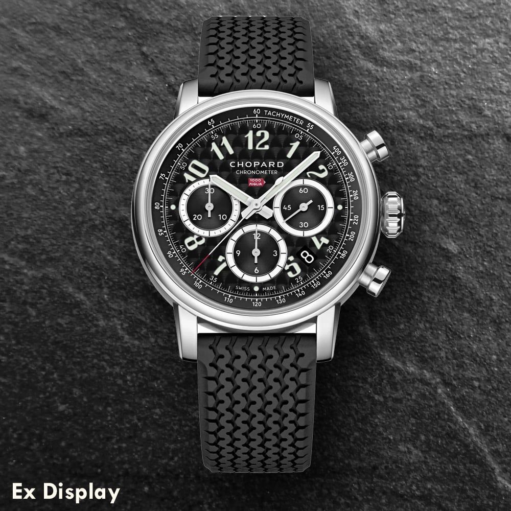 The Chopard Mille Miglia is a stunning and stand out timepiece that looks race ready. This watch features a chronometer certified movement for guaranteed time keeping accuracy, a tachymeter timing scale bezel and three chronograph sub dials. The watch also features a date display
