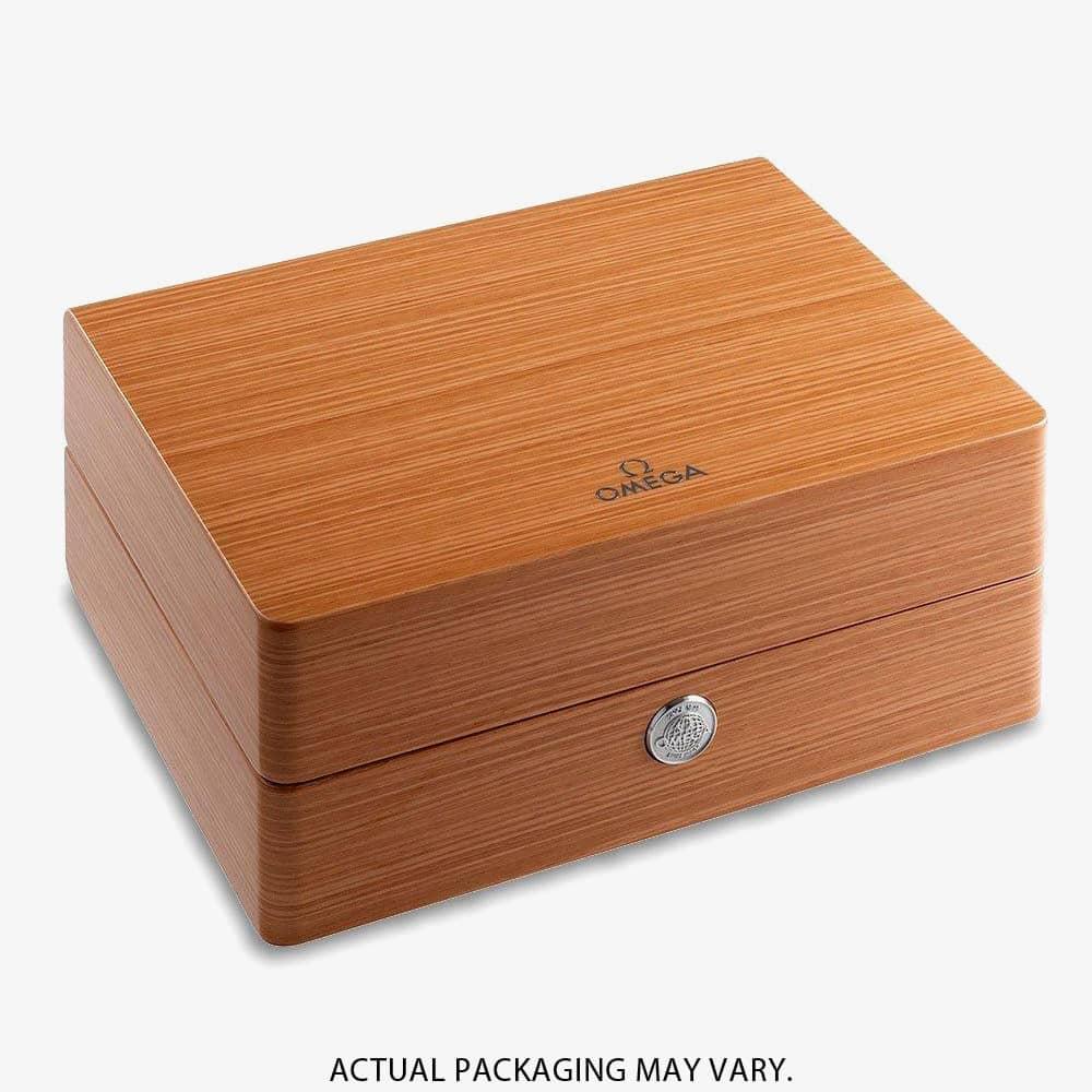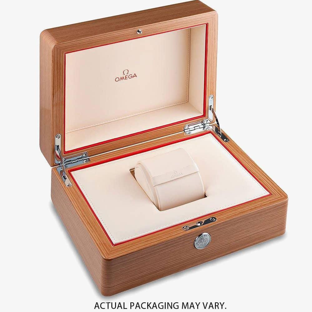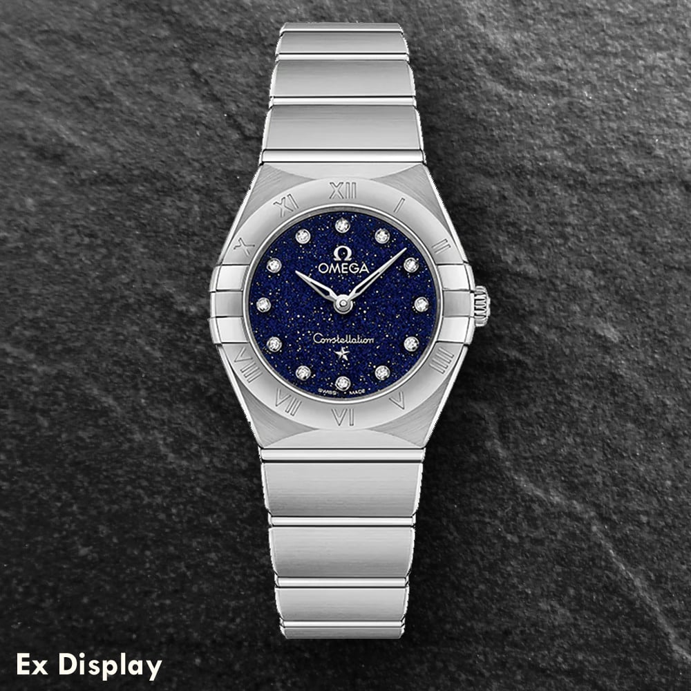 The enduring and eye catching design of the OMEGA Constellation is characterised by its famous half-moons on the case along with the mono-rang bracelet. Featuring a dramatic glistening blue aventurine glass dial, diamond hour markers finished with 18ct white gold hands, OMEGA logo, and Constellation star. MOVEMENT