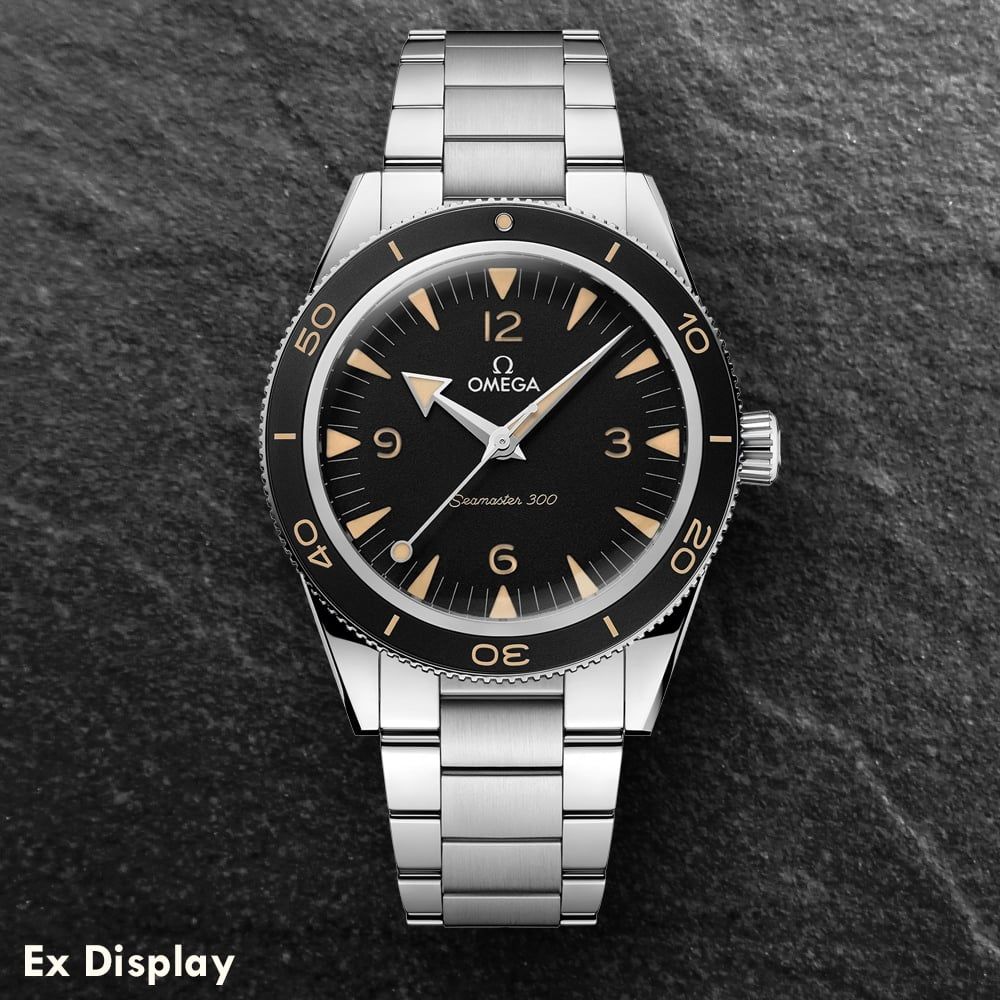 The OMEGA 234.30.41.21.01.001 Seamaster watch combines a 41mm round shaped stainless steel case and silver stainless steel bracelet with a push button deployment clasp and a black oxalic anodized aluminium bezel with a vintage Super-LumiNova filled diving scale. It has a black analogue dial which is protected beneath domed sapphire crystal glass with a NAIAD Lock case back, with recessed hour markers, rhodium-plated hands and open numerals featuring Super-LumiNova. Power is generated by Certified Master Chronometer self-winding automatic movement with Co-Axial Master Chronometer Calibre 8912 movement. This model also has a water resistance of up to 300 metres.