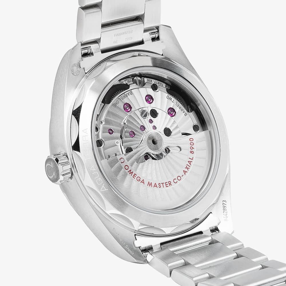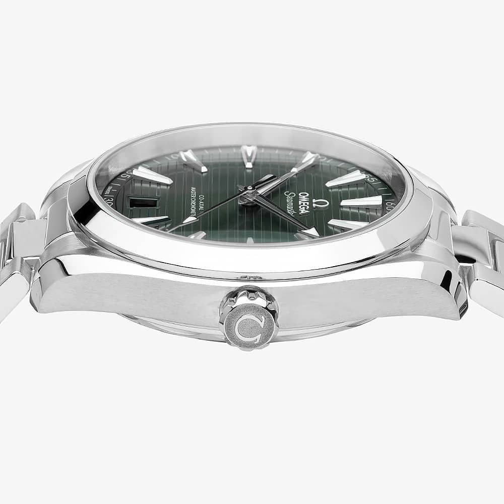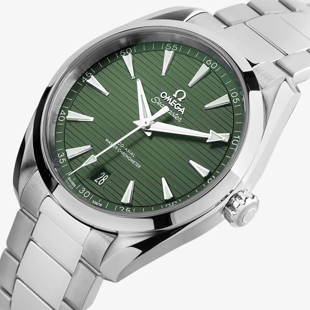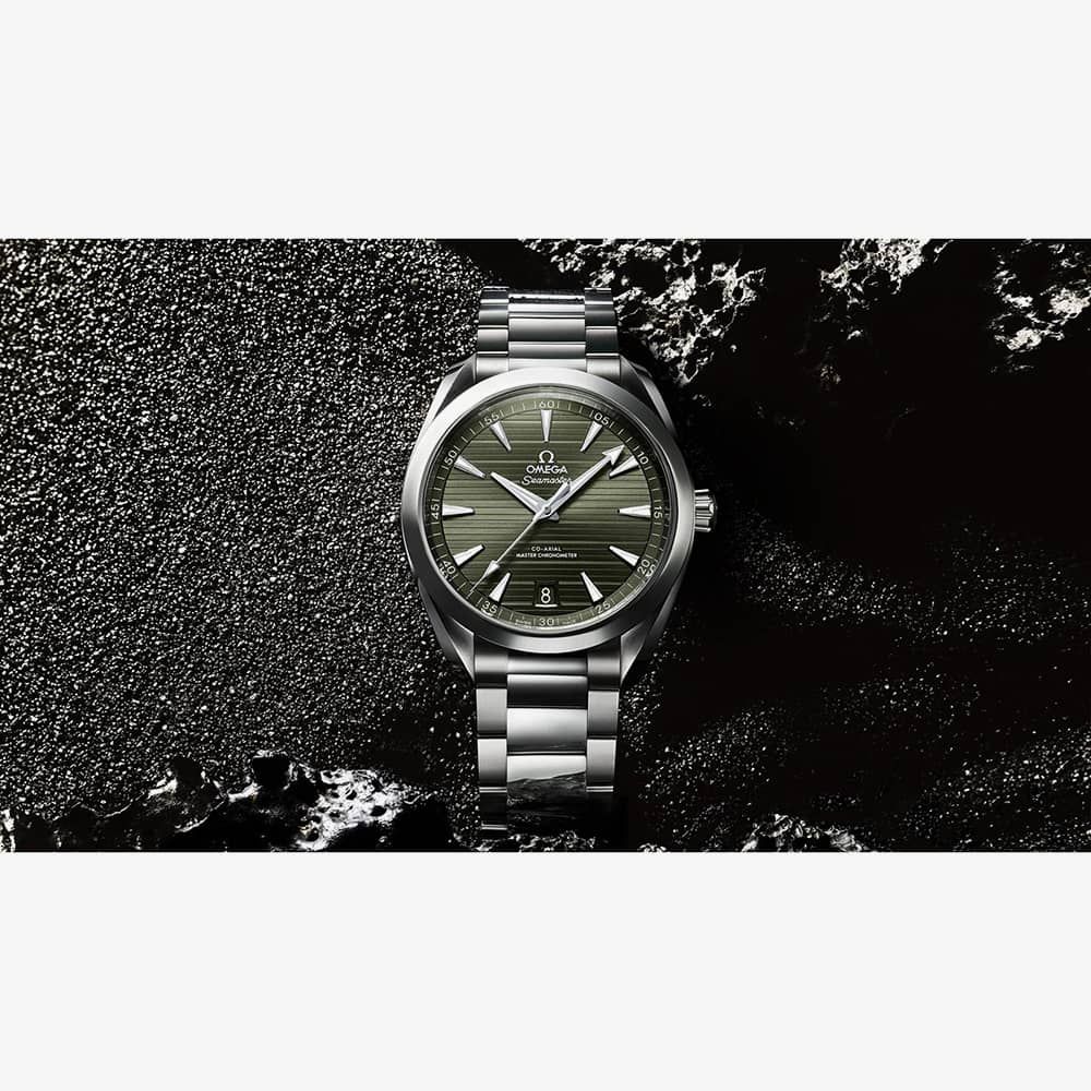 The Seamaster Aqua Terra is a remarkable tribute to OMEGA's maritime heritage. This 41mm model features a symmetrical stainless steel case with a wave-inspired design on the back. The green dial has a "teak" pattern, reminiscent of sailboat decks, and includes a date window at 6 o'clock, along with rhodium-plated hands and indexes filled with Super-LumiNova. Powered by the OMEGA Master Chronometer calibre 8900 certified to the industry's highest standard by METAS.