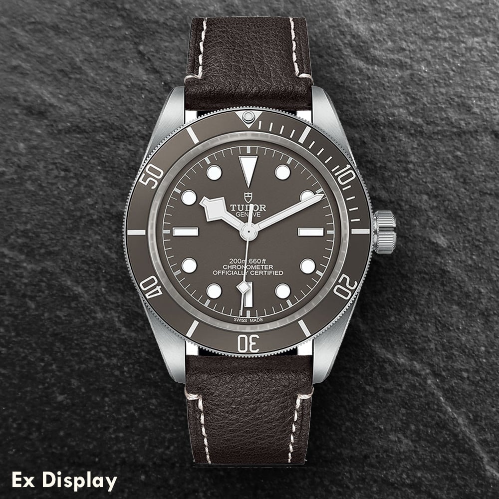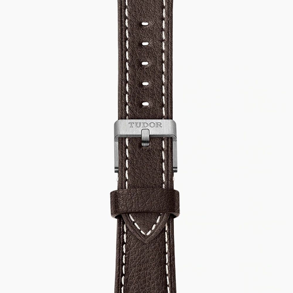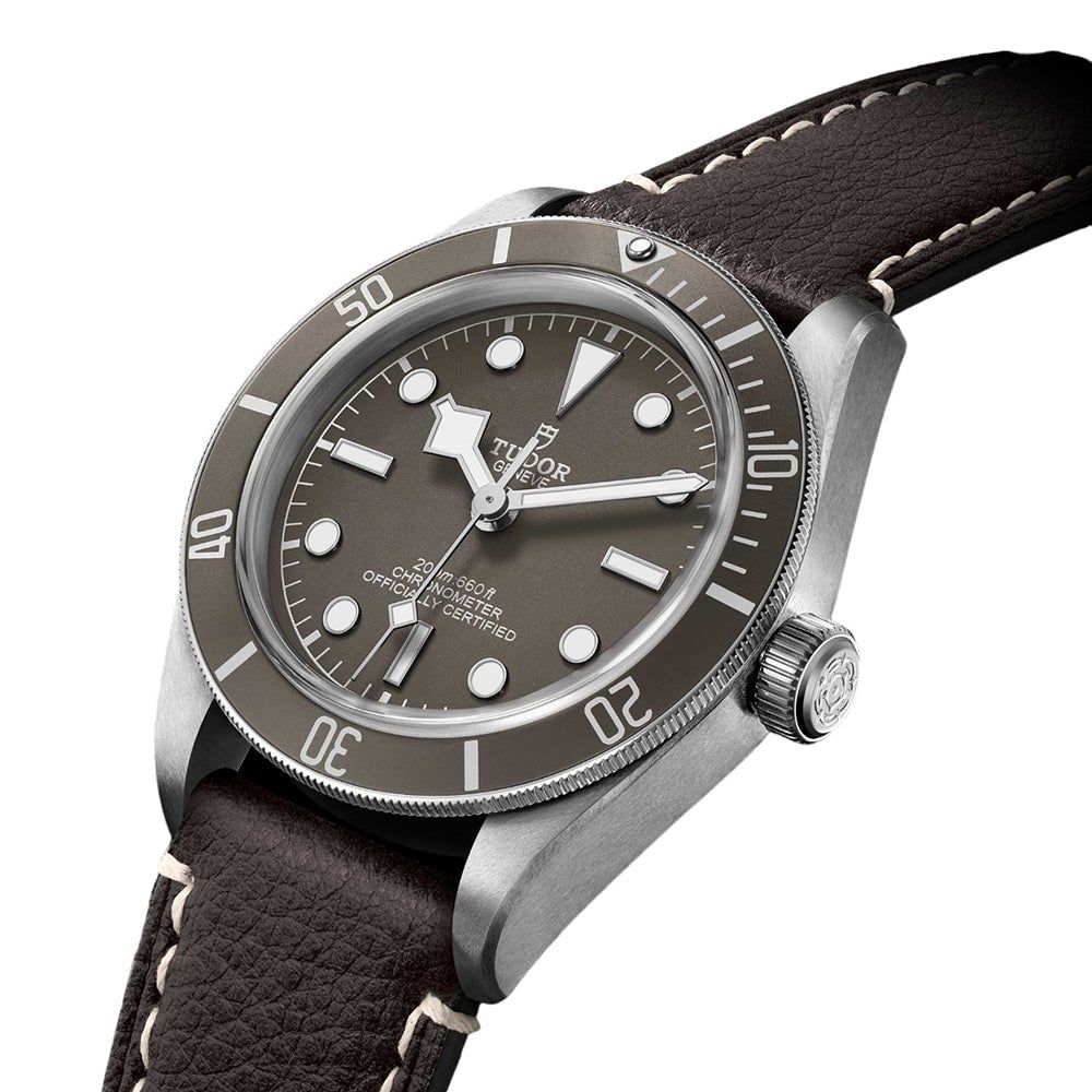 TUDOR Mens Black Bay Fifty-Eight 925 M79010SG-0001 watch features a 39mm 925 sterling silver case. The watch features a grey/taupe dial with super luminova hour markers that is protected underneath scratch resistant sapphire crystal. The watch is powered by automatic movement which has a power reserve of 70 hours. The case sits on a brown leather strap which features a traditional buckle. The watch is water resistant for up to 200 meters.