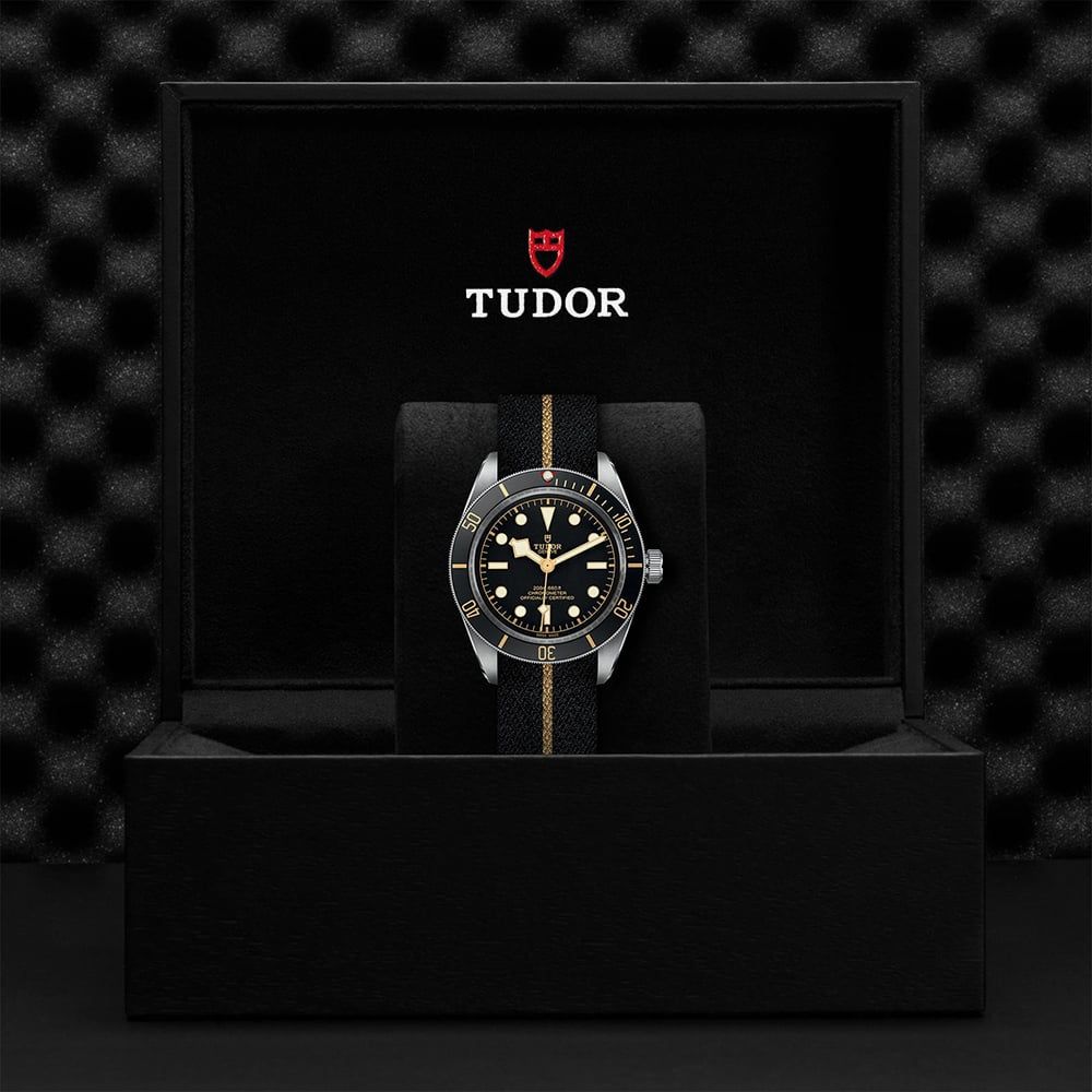 Following previous TUDOR Black Bay lines, the Black Bay Fifty Eight features a dial inspired by TUDOR Divers’ watches of the 1950’s as well as the characteristic angular hands from the 1969 catalogue; referred to as snow flake by TUDOR collectors. Set upon an elegant 39mm polished and satin finished steel case is the matt black, gold finished 60-minute graduated unidirectional bezel. Complete with the classic black fabric strap, capturing the essence of the Black Bay. Again, TUDOR refer back to the Black Bays’ heritage by adding the traditional, large winding crown embossed with the iconic TUDOR Rose, featured on the first generation of TUDOR divers’ watches, enabling waterproofing of depths up to 200m (660 ft). Powered by the self-winding Calibre MT5402 (COSC) with a remarkable power reserve of up to 70 hours, the TUDOR Black Bay 58 is a welcome addition to the famous Black Bay collection.