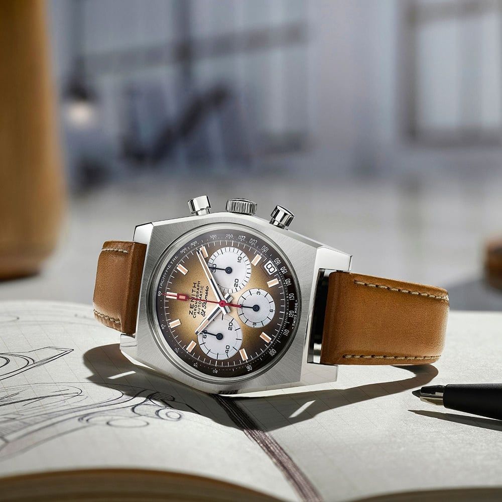 The New Zenith Chronomaster Revival El Primero A385 is inspired by the Original Revival reference A385, of 1969. The 37mm case is crafted in a fully matte stainless steel and paired with a brown gradient dial based on the first watchmaking industry back in 1969. Unlike most watches fitted with an El Primero movement, the new Zenith Chronomaster Revival EL Primero features a date display. Presented on the luxurious brown leather strap, complete with a classic stainless steel pin buckle. An open sapphire crystal case back also allows the movement to be viewed.
