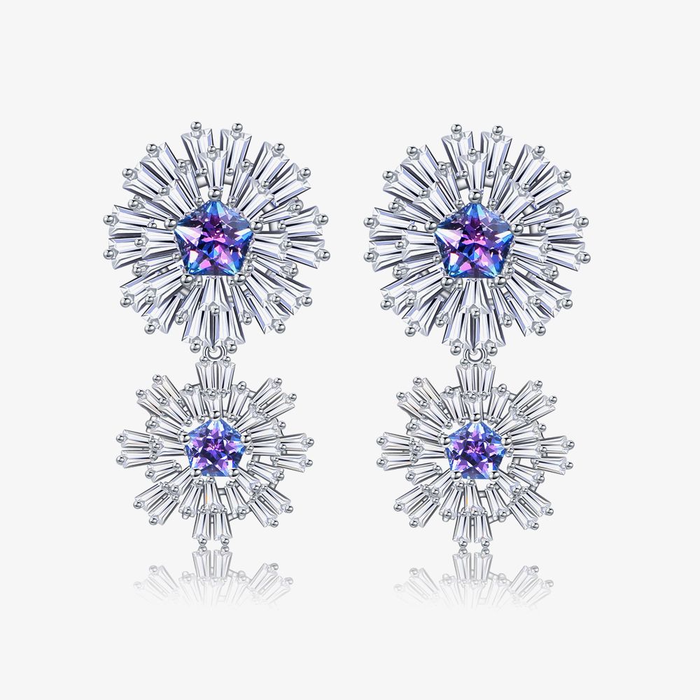 Fei Liu Carpe Diem Silver Crystal Double Flower Dropper Earrings CAR-925R-208-SWCZ