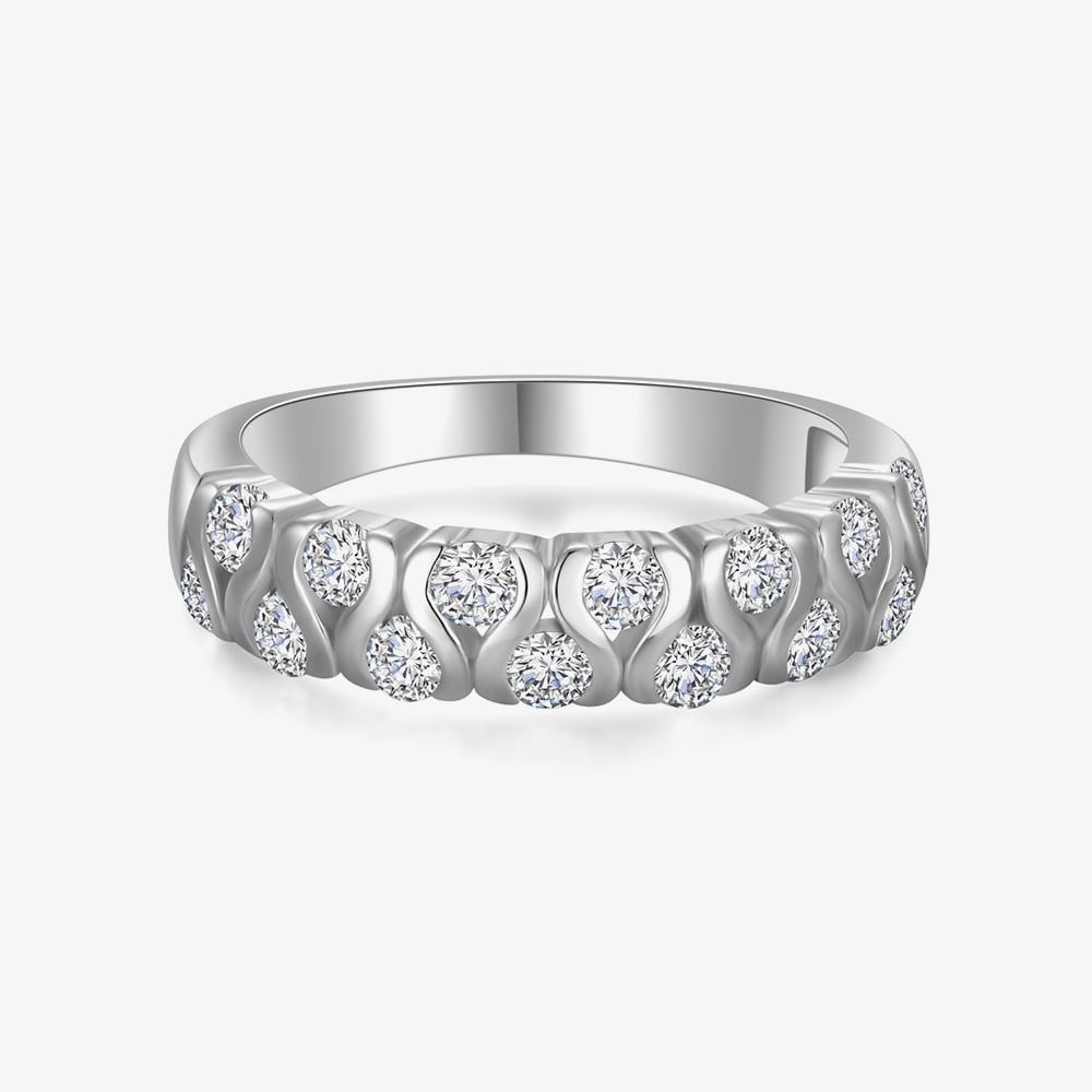 Fei Liu's Lilia eternity ring is crafted from sterling silver and adorned with sparkling white cubic zirconia stones. This timeless and elegant design symbolizes everlasting beauty, making it a perfect addition to any jewellery collection.