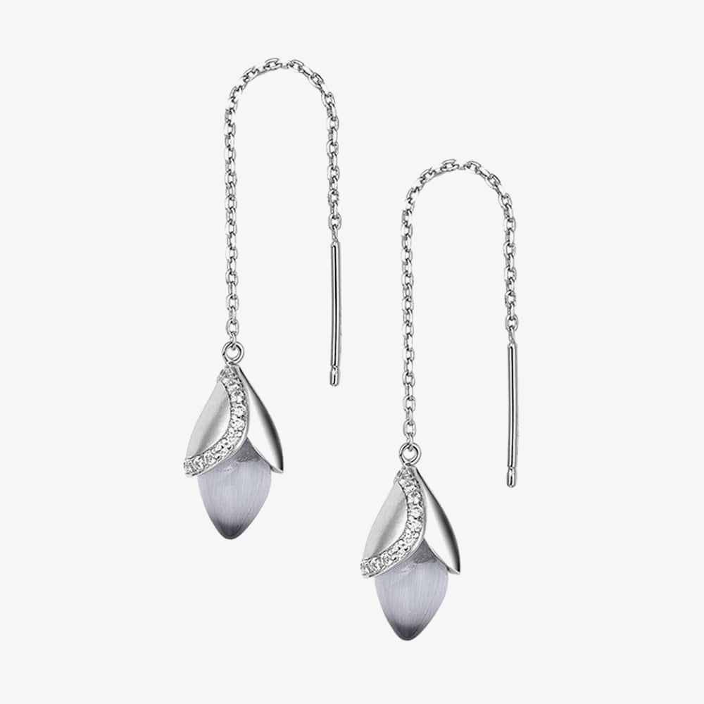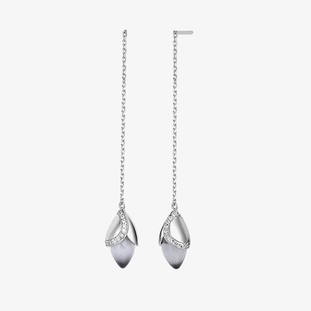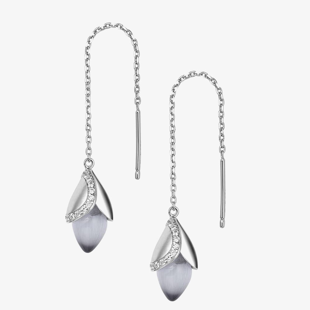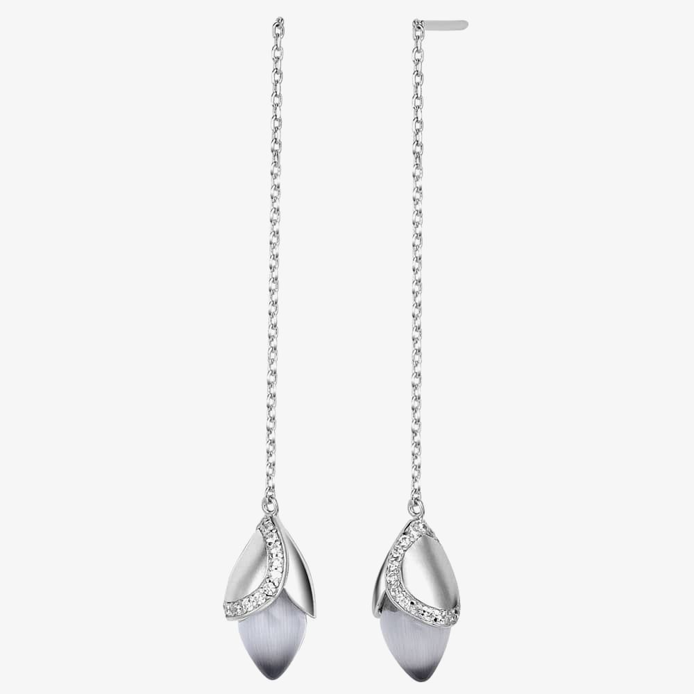 Fei Liu Magnolia Silver Cubic Zirconia Chain Dropper Earrings MAG-925R-203-CEGY