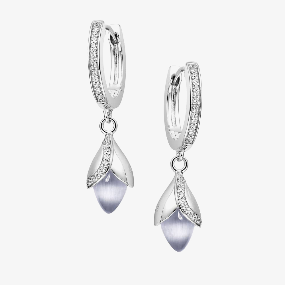 Fei Liu Magnolia Silver Cubic Zirconia Hoop Dropper Earrings MAG-925R-201-CEGY Fei Liu Magnolia Silver Cubic Zirconia Hoop Dropper Earrings MAG-925R-201-CEGY