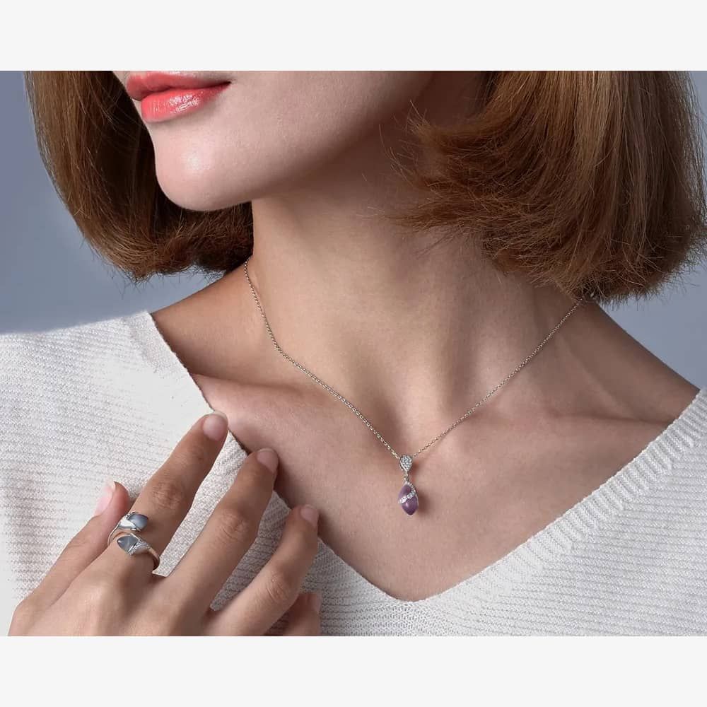 A symbol of awakening and hope, this stunning magnolia ring blossoms with pretty cats eyes and dew drops of cubic zirconia. The ring is finished with a satin and high polished finished for a contemporary look.