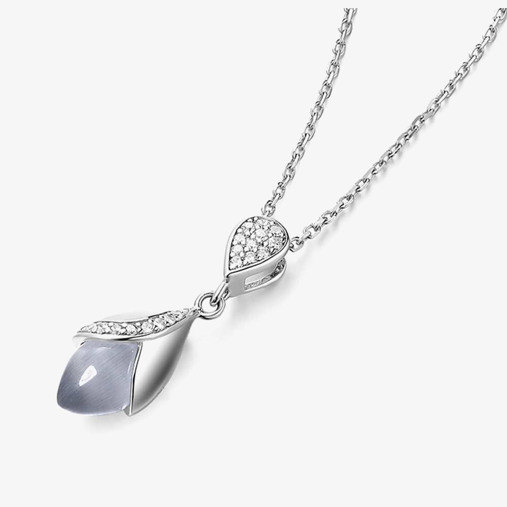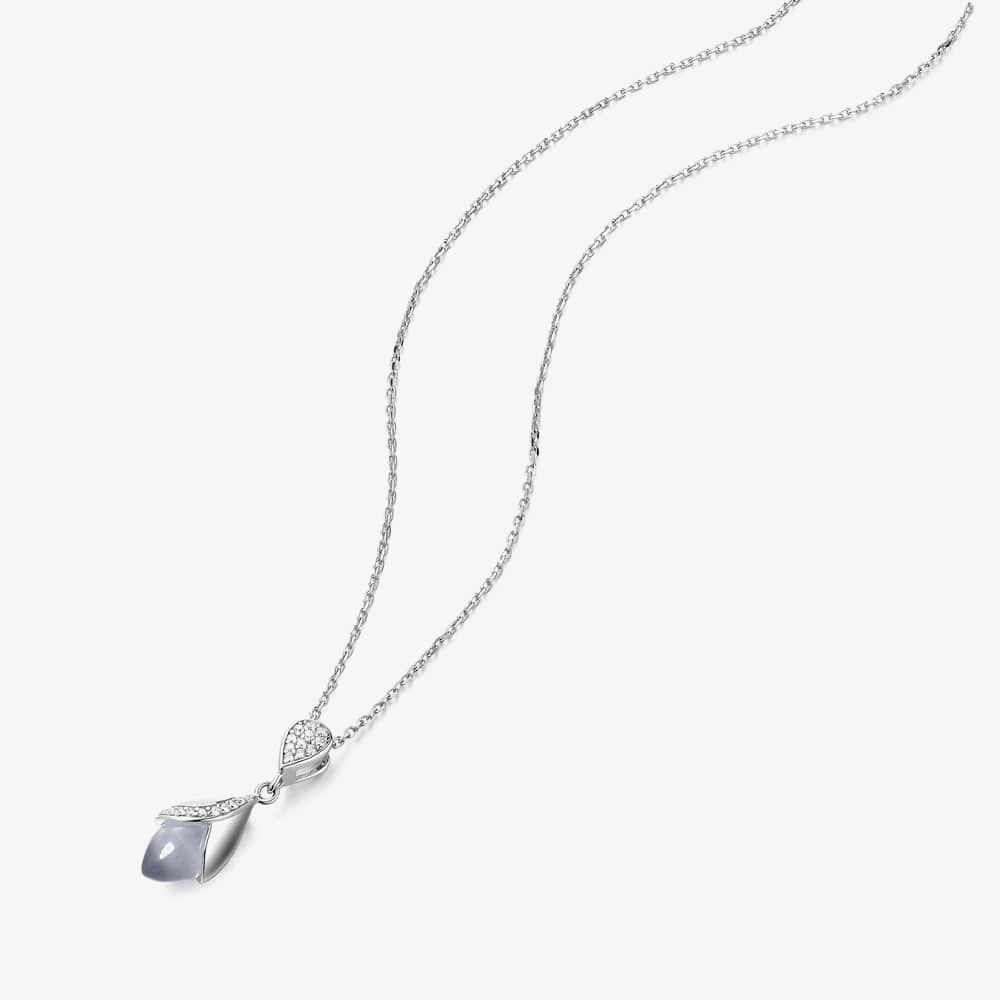 A symbol of awakening and hope, the magnolia tree is the inspiration behind this beautiful pendant. The beauty of the cat's eye and it's inclusions and unique imperfections are complimented with a high polished finish. The perfect accessory for the modern woman.