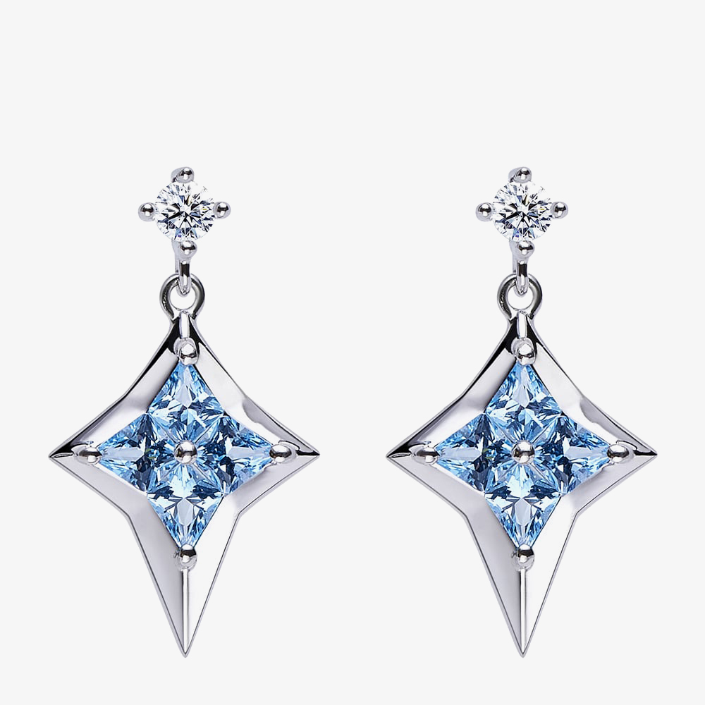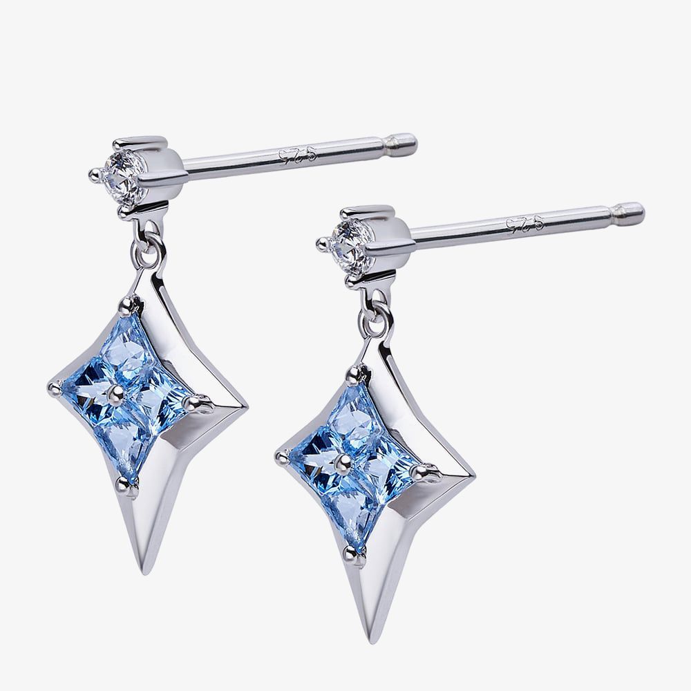 Fei Liu Star of Love Silver Kite Cut Blue Topaz Cubic Zirconia Drop Earrings POL-925R-201-BLCZ