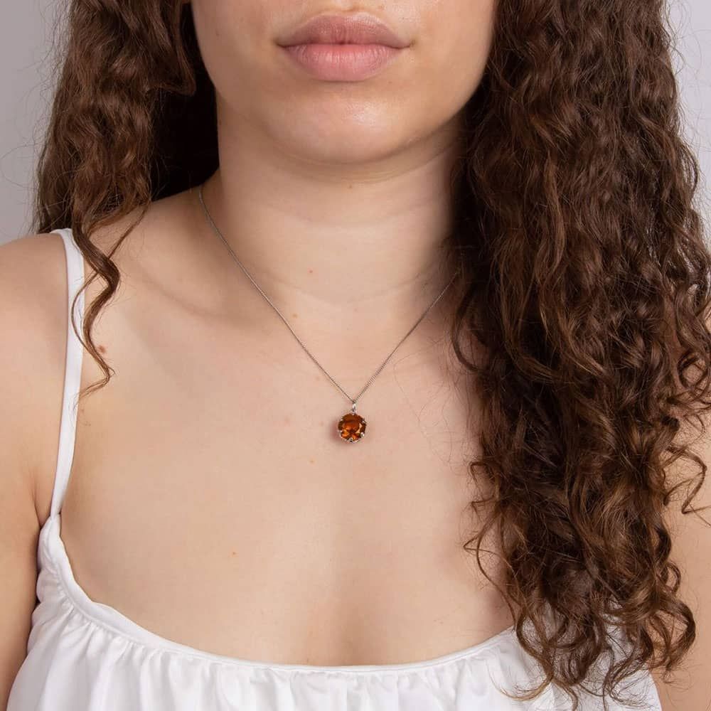 This Sacral Chakra pendant helps you connect with others and enhances happiness, pleasure, and creativity. Expertly crafted from recycled sterling silver, it features exquisite crystals and displays the chakra symbol on one side and its corresponding colour on the other. With an adjustable length of 41cm to 46cm, it can be layered with other chakra pendants to match your style and needs.
