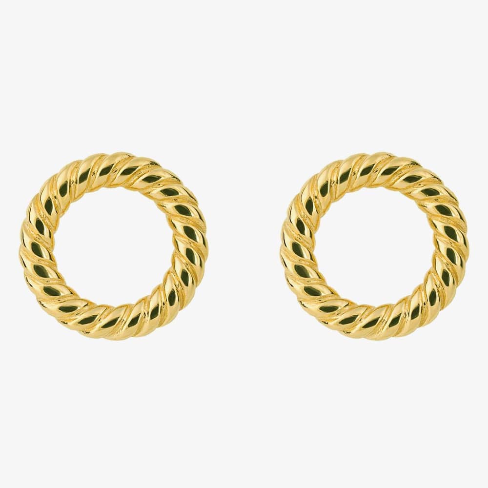 These stunning open circle earrings blend a classic hoop silhouette with an intricate rope design. Crafted from recycled sterling silver and adorned with 18ct yellow gold plating, they are a perfect addition to any jewellery collection.