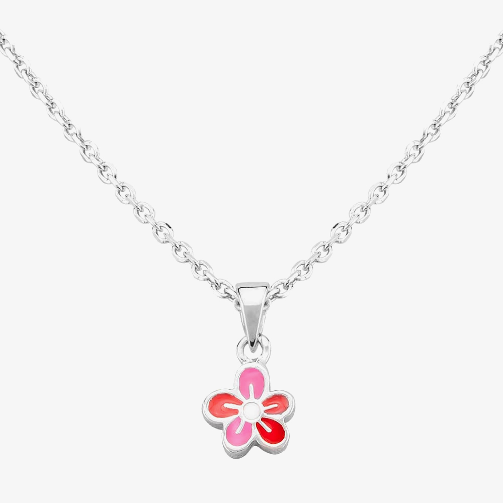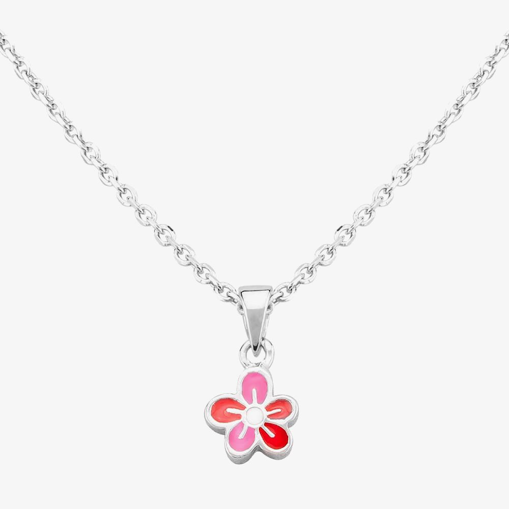 Dainty and bright, this pretty flower pendant will add a cute finish to any outfit. Beautifully crafted in sterling silver this wonderful flower shaped pendant features red and pink enamel details. Part of the Fleur collection made especially for children, the pendant sits upon an oval cable link chain which is finished with a spring ring clasp for easy wear and safe removal. Wear individually or pair with the matching earrings from the collection for the perfect floral finish.