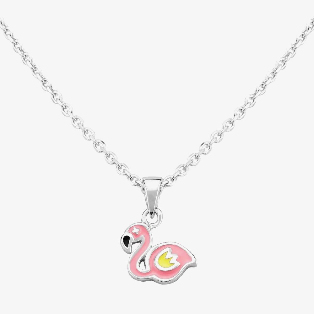 Add a pop of colour to any outfit with this cute flamingo pendant necklace. This dainty necklace features a soft pink flamingo pendant with a flash of yellow upon it's wing. Part of the Fleur collection made especially for children, the pendant sits upon an oval cable link chain that is finished with a spring ring clasp for easy wear and safe removal. Wear with matching items from the collection for a perfect pink finish to any outfit.