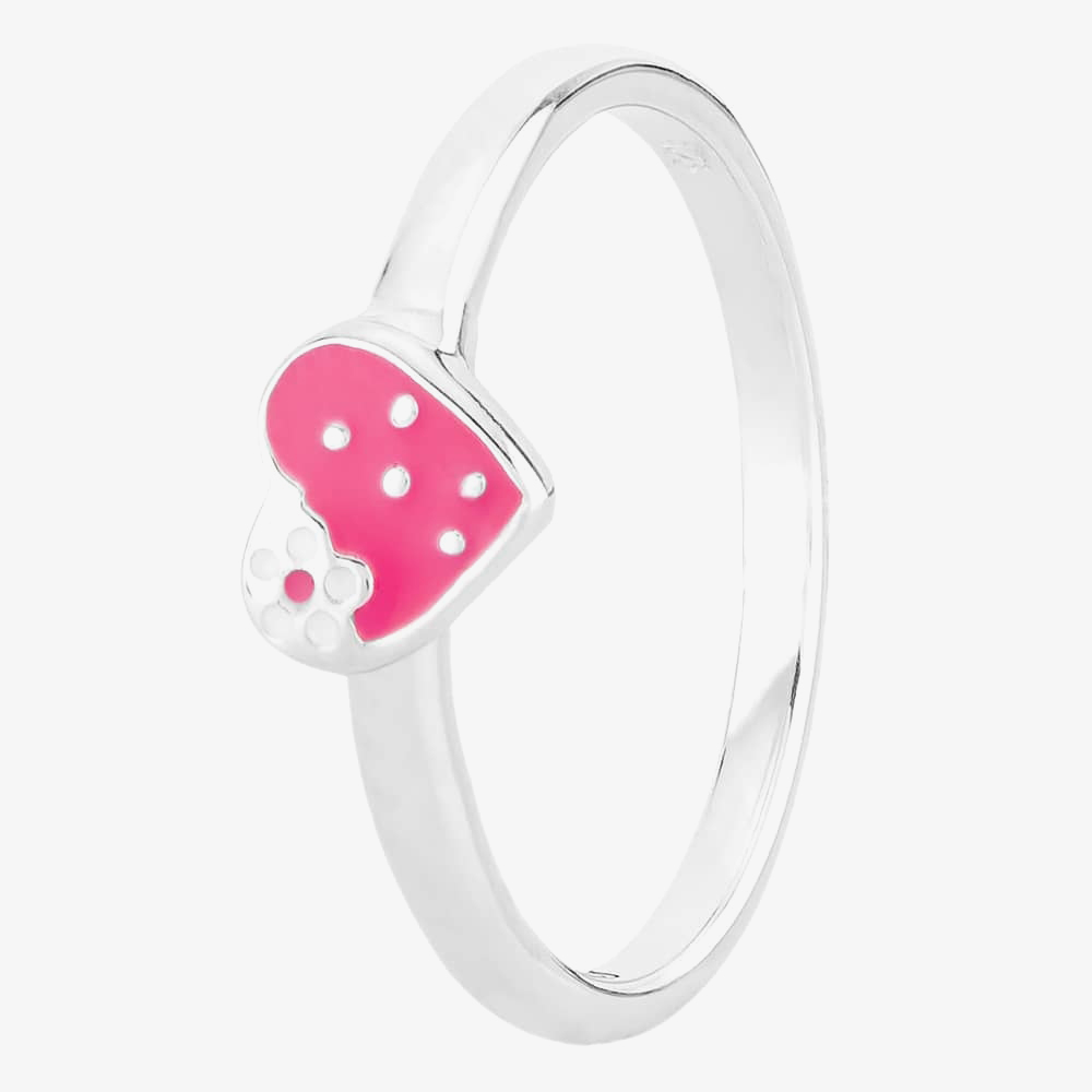 Add a sweet romantic finish to your everyday wear with this adorable strawberry heart-shaped ring. Beautifully crafted in sterling silver, the ring features a heart-shaped design with a red strawberry detail. Part of the Fleur collection, the ring is available in various sizes for a perfect fit. Part with matching items from the collection for a fruity finish to your look.