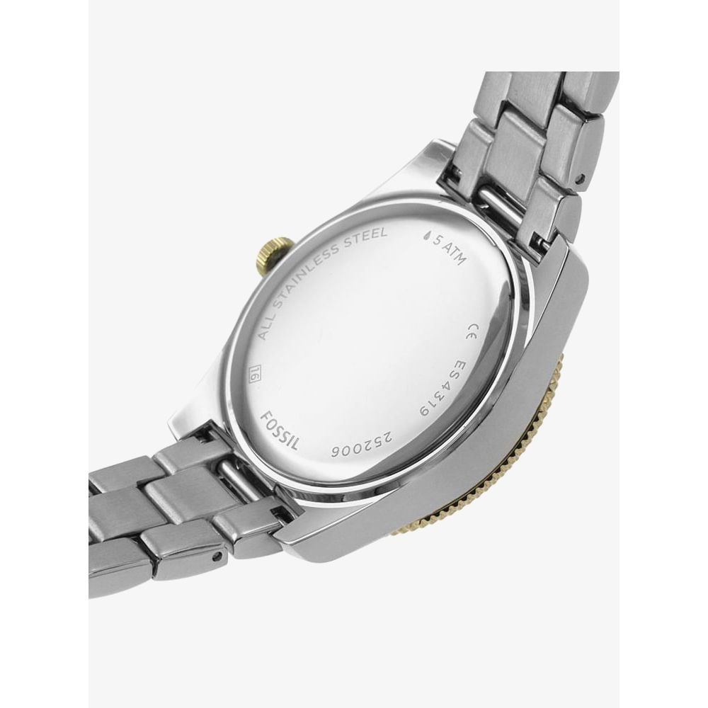 This fossil watch has been crafted from a hard wearing stainless steel and yellow gold ion plated case and bracelet that features a gold coloured dial with luminescent hands and gold coloured indexes. Additionally this watch features a mineral crystal glass which is surrounded by a sparkling stone set bezel and useful date display.
