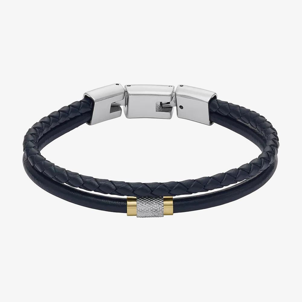 Bold and distinctive, the Fossil Machine Bracelet features rich navy blue leather with a unique knurled texture detail. Designed with multiple strands and secured by a buckle clasp, it’s a stylish statement piece that adds edge to any outfit.