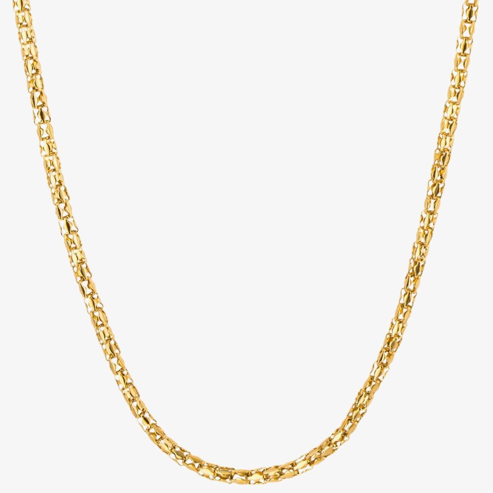 From the Everyday Unity collection, this stunning and versatile popcorn chain necklace which features interlocking links represents an unbreakable bond. Being created in yellow gold IP stainless-steel and measuring 56cm in length, this necklace encourages being layered with other Fred Bennett chains to create your own individual look.