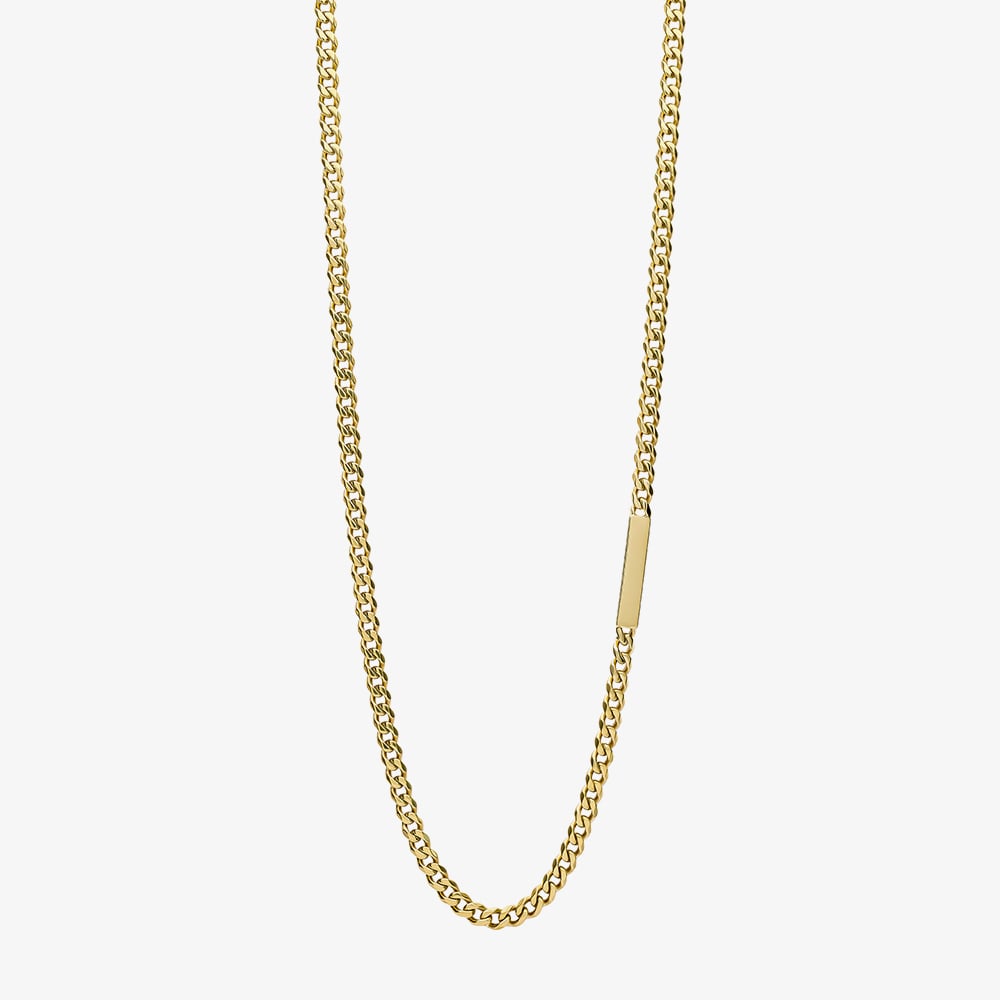 The Fred Bennett gold-tone stainless steel curb chain necklace features a sleek plate detail for a stylish, modern look. Crafted from durable stainless steel with a polished gold-tone finish, it is secured with a reliable lobster clasp for easy wear.