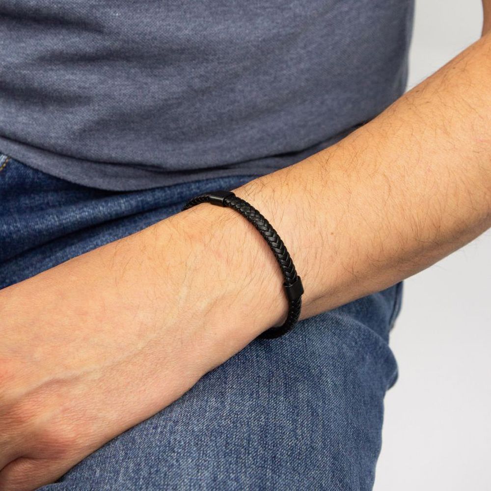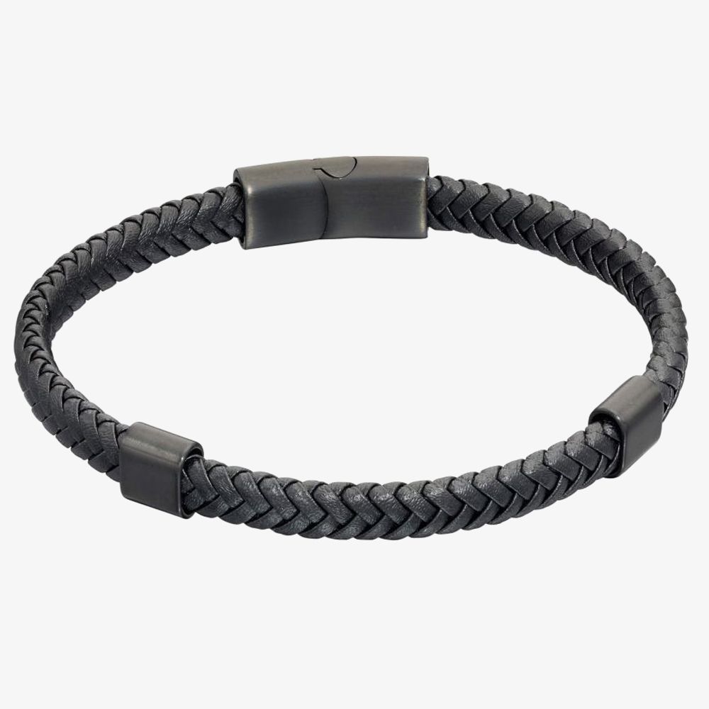 Part of the new Fred Bennett Reborn collection, this recycled genuine black leather plaited bracelet with black IP is sure to stand out from the crowd. With a total length of 21cm and featuring a magnetic clasp, this piece will make the perfect gift for a loved one who is conscious about the sustainability of what they buy and wear. Items included in the Fred Bennett Reborn collection are made from scraps of genuine leather that are recycled in a very similar process to how paper is recycled. With on trend colours, textures and designs there is something in this collection for everyone.
