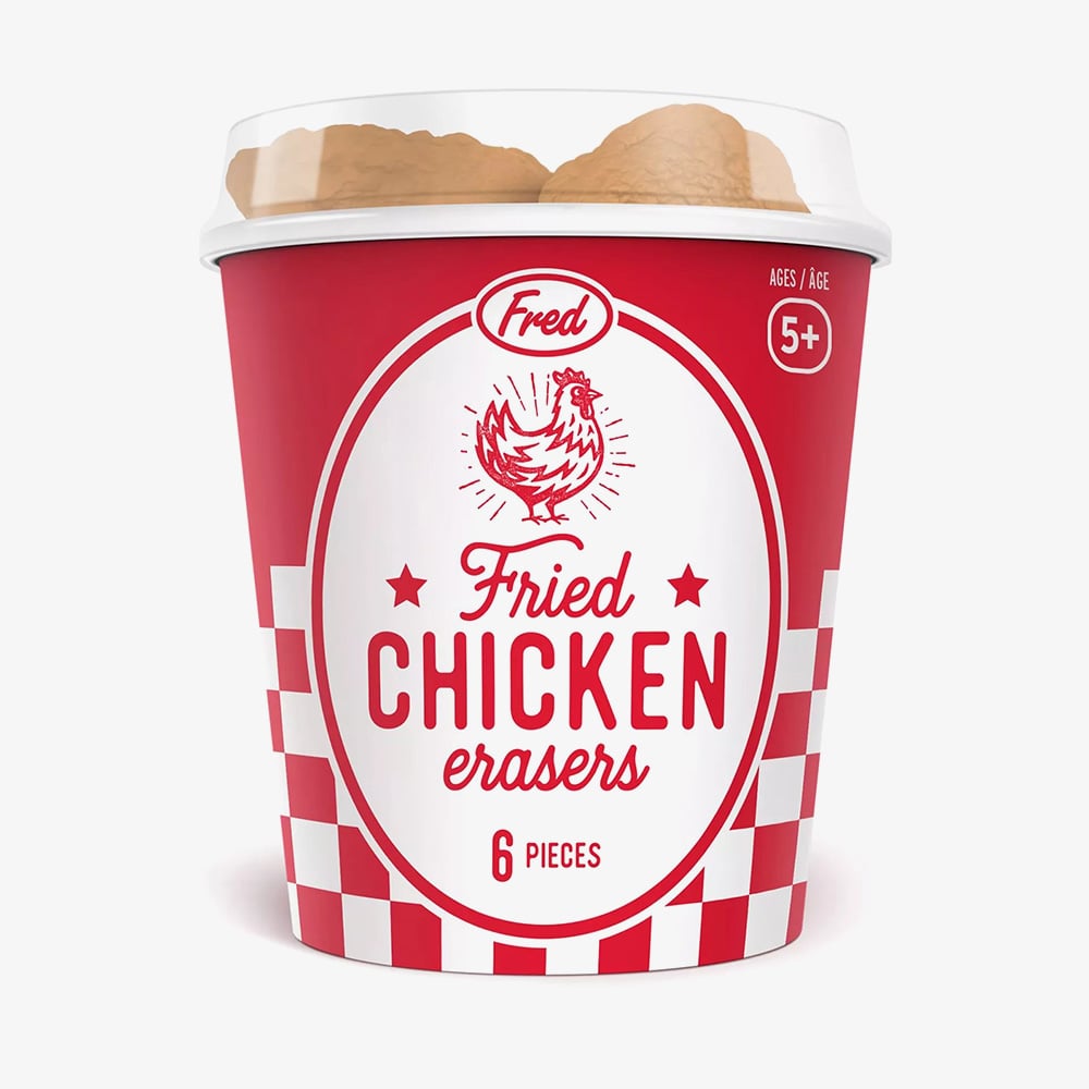 Add a fun and quirky touch to your desk with Fred’s 6-piece Bucket of Fried Chicken Erasers. Made from BPA-free TPR, each eraser comes packaged in a colourful paper “bucket” with a clear sealed lid. Designed by Charlotte Saul for Fred Studio, this set is as playful as it is practical and a fun, novelty gift.