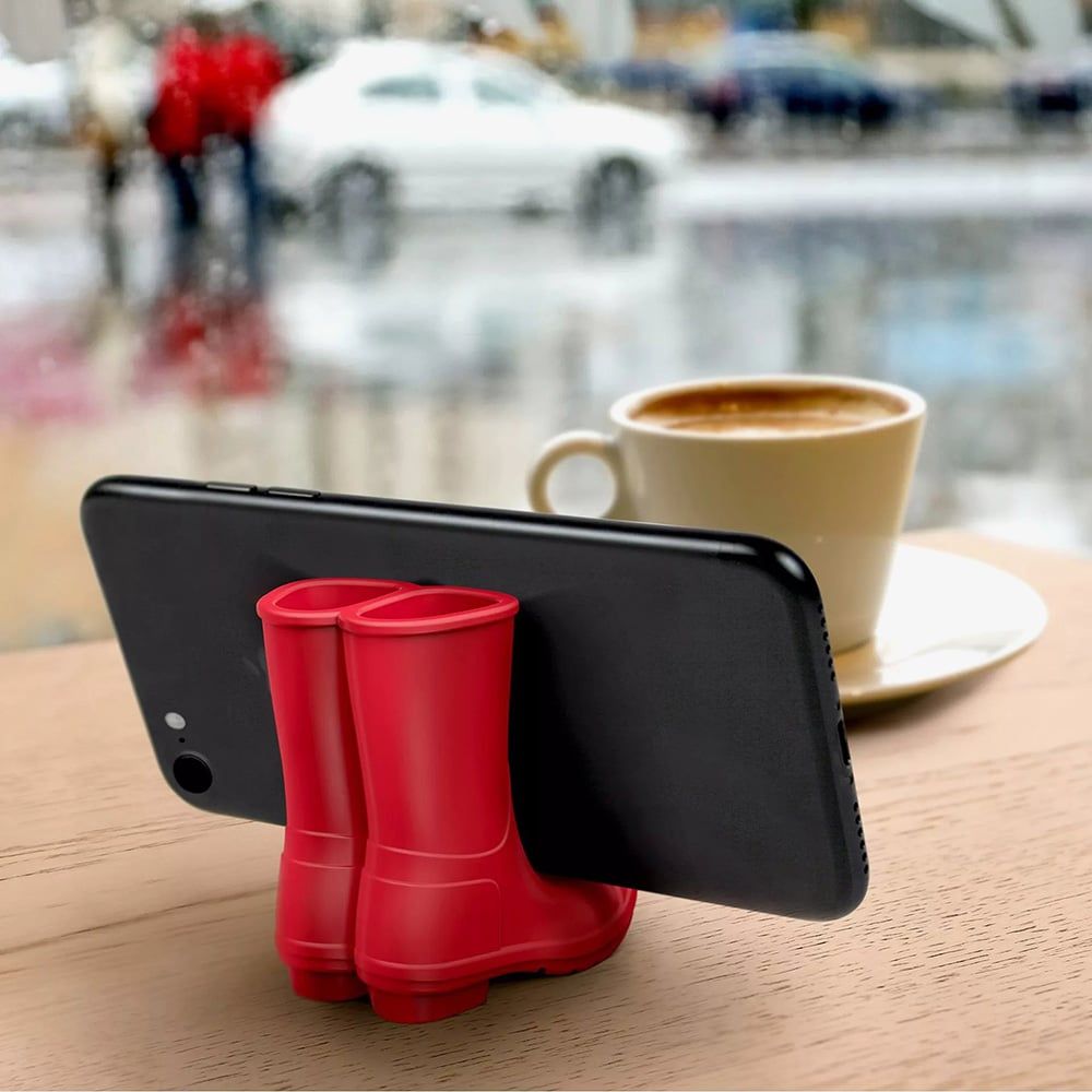 Keep your phone handy with a playful twist using the Fred Reboot Wellington Boots Phone Stand. This quirky pair of red Wellington boots, crafted from TPR rubber, securely holds most smartphones in portrait or landscape orientation. Fun, functional, and full of character, it’s a perfect desk accessory for adding a pop of personality to your space.