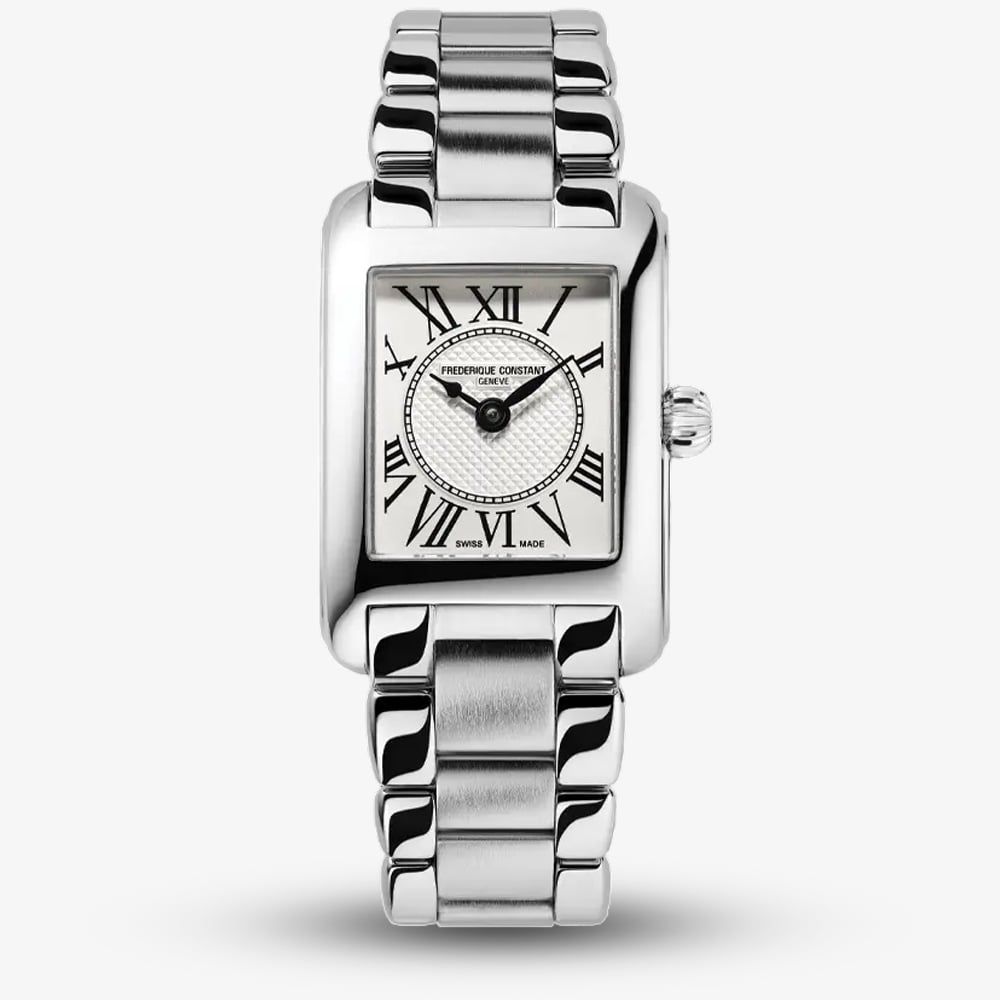 This stunning timepiece combines classic charm with modern precision for effortless, everyday luxury. The graceful rectangular silver-tone case and matching stainless steel bracelet offer a refined look that pairs beautifully with any outfit. Perfect for both casual and formal settings, this watch enhances your style with understated glamour.