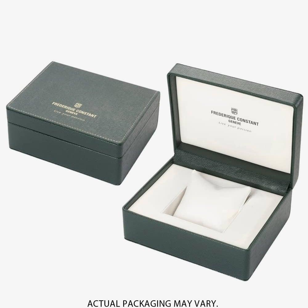 The latest in our Highlife collection, the Automatic Chronograph blends sophistication with versatility. Housed in a stainless steel case, it features a globe-engraved dial with a green outer ring, date display, and a matching green nubuck-finish leather strap. With two extra strap options—a green rubber strap and stainless steel bracelet—style is always within reach. A see-through case back reveals the FC-391 automatic movement, offering a 60-hour power reserve beneath an anti-reflective convex sapphire crystal.