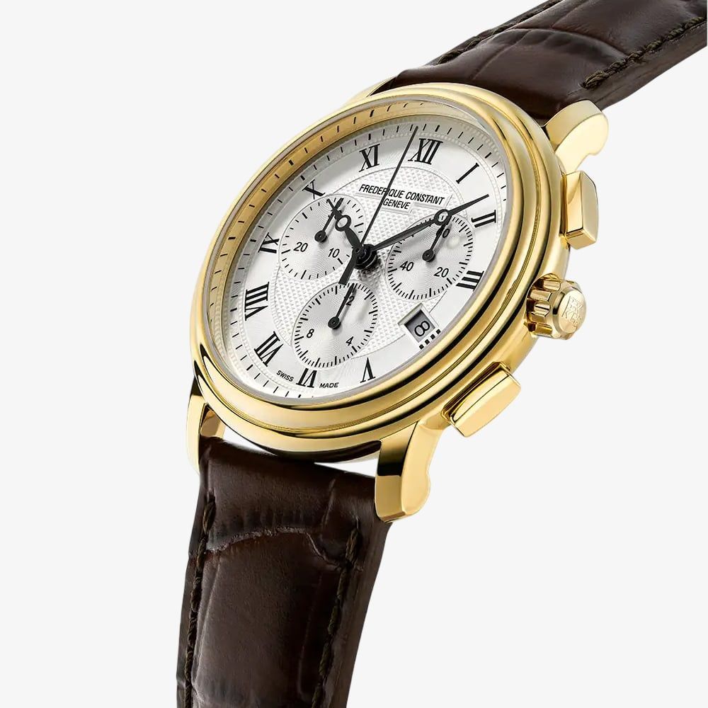 Made from warm gold-plated stainless steel, the watch exudes polished confidence. The bold black leather strap adds a luxurious touch, wrapping comfortably around your wrist for all-day wear. This watch is powered by the reliable Swiss quartz movement, ensuring precise and reliable timekeeping. Protected by a scratch-resistant sapphire crystal glass and offering water resistance up to 50 metres, this timepiece is as durable as it is elegant. It’s built to withstand life’s daily demands while keeping your look refined and polished.
