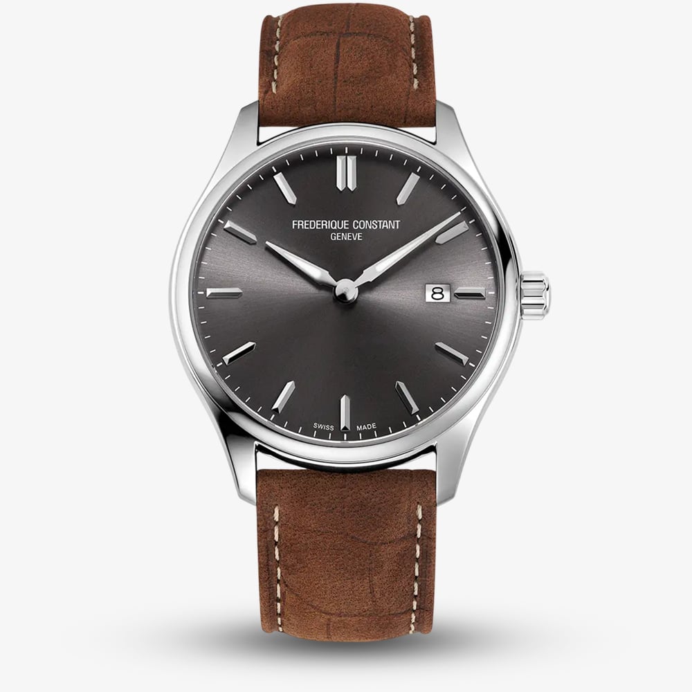 This timepiece delivers timeless style with everyday versatility. The sleek grey dial offers a clean, contemporary look with a subtle sunray finish that catches the light just right. Silver-tone hands and applied hour markers add a polished touch, ensuring easy readability. A discreet date window provides essential function while maintaining the dial’s balanced aesthetic.