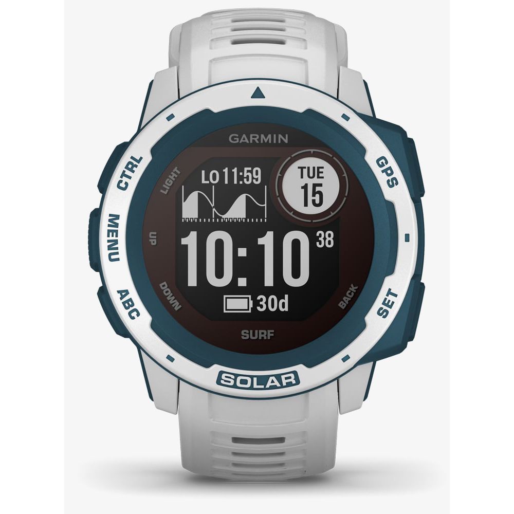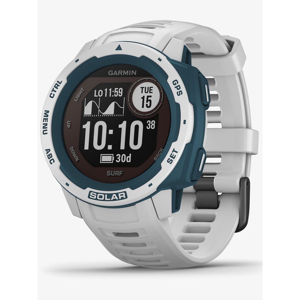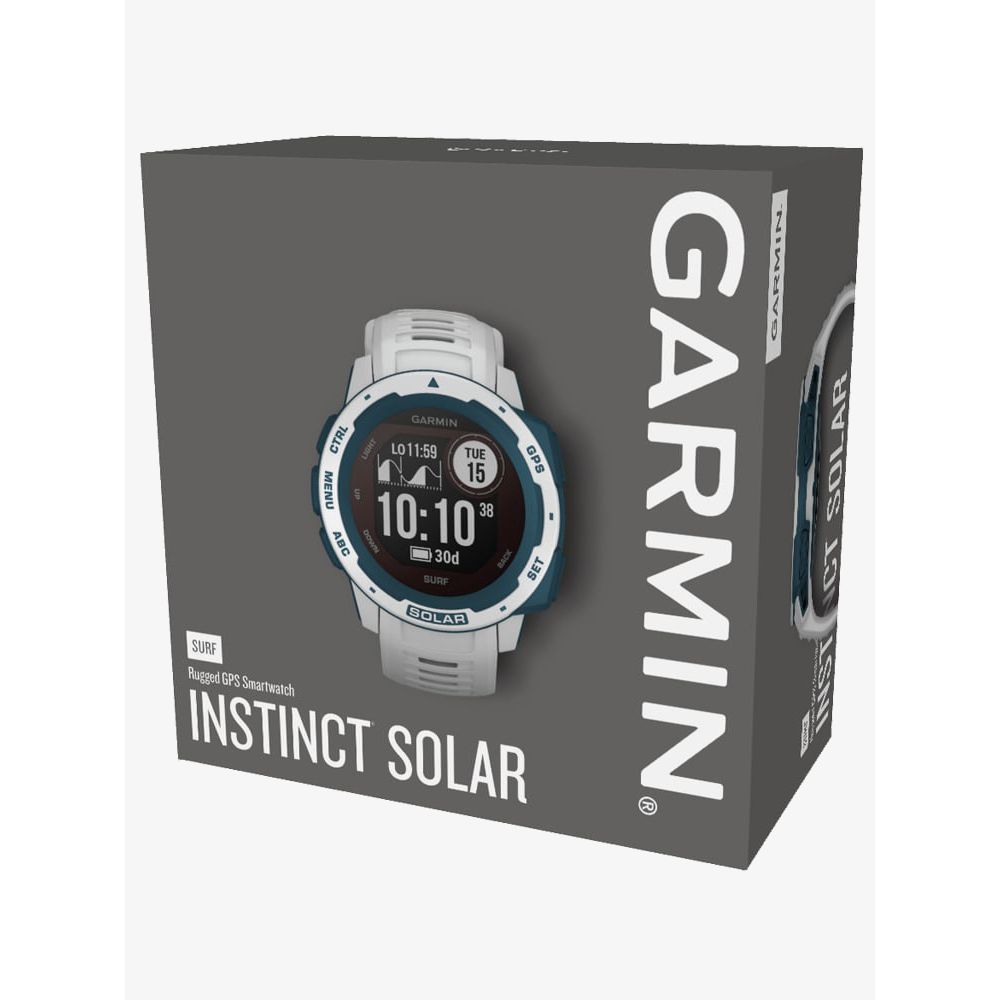 Chase the wave - longer, with Instinct Solar - Surf Edition. This rugged GPS surf watch boasts solar charging - giving incredible battery life - and is water-rated to 100 meters. Dedicated surf features such as tide data and a surfing activity help you make the most of every wave. Multiple global navigation satellite systems (GPS, GLONASS and Galileo) help you track in more challenging environments than with GPS alone. Monitor how your body uses energy by tracking heart rate, stress, sleep and Pulse Ox. Get the most out of the sports you love with preloaded activity profiles such as surfing, running, biking, swimming and more. Smart notifications at the wrist keep you connected to what matters.
