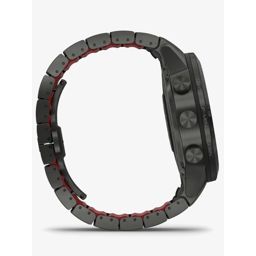 Whether you set course records or are inspired by those who do, MARQ Driver accelerates that passion for racing. It is the only modern tool watch with smart features and 250 preloaded global racetracks. A tachymeter bezel demonstrates your dedication to speed. Auto lap splits and live delta time show your hard-charging, unrelenting pace. And the magnificent styling of a strong yet breathable titanium bracelet keeps you cool no matter how heated the contest. Add to that an unprecedented diamond-like carbon coating with ceramic bezel inlay, and you have the first instrument crafted for the one who always resides in the pole position.